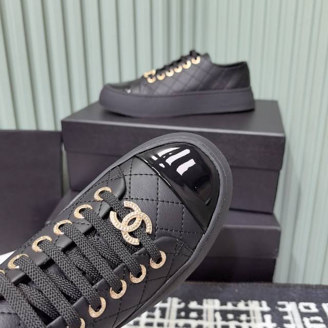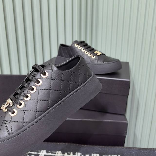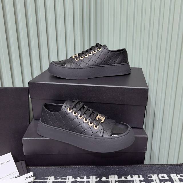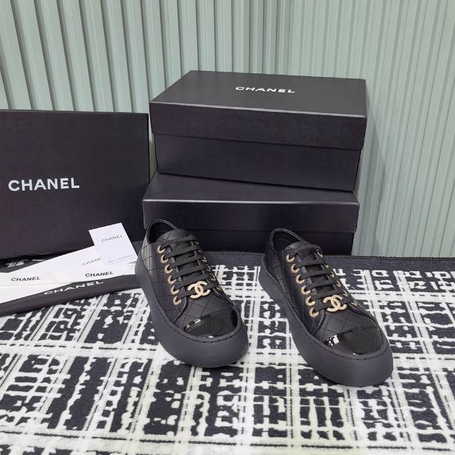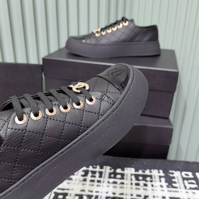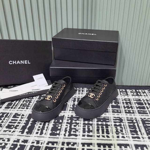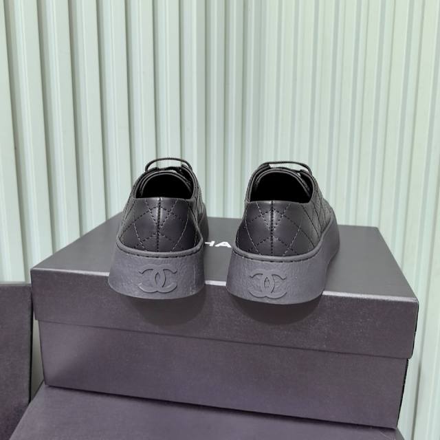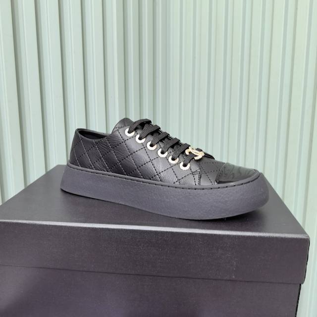 皮面 Chanel 香奈儿 2025Ss新款 小香厚底菱格纹大头鞋饼干鞋滑板鞋休闲运动鞋