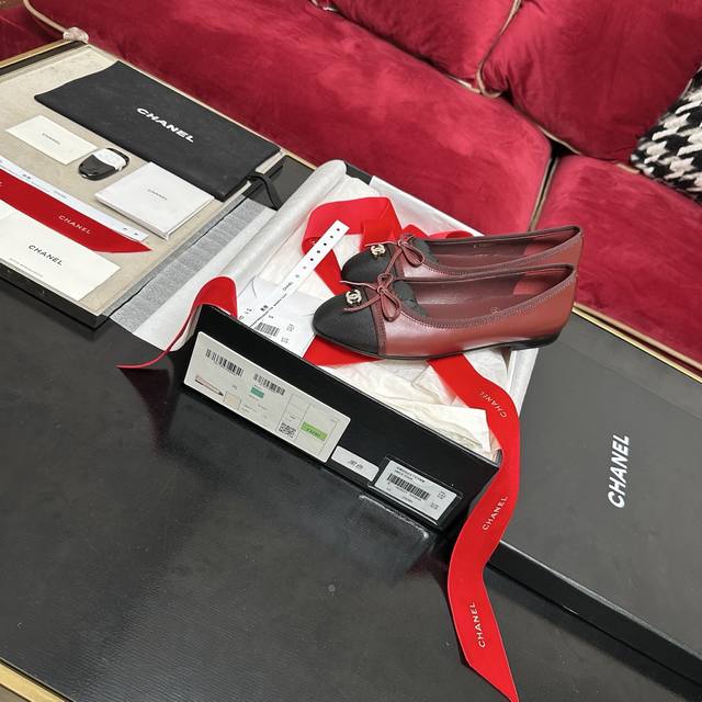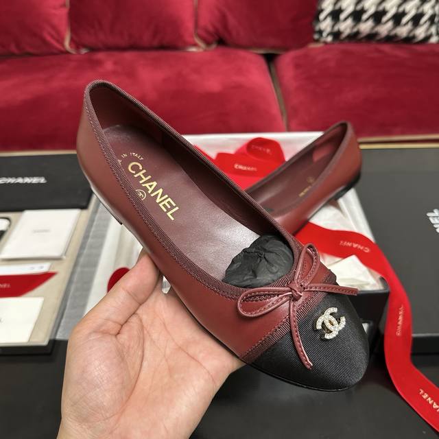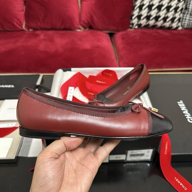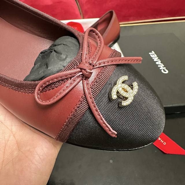 酒红 新品Chanel 香奈儿 芭蕾舞鞋香奶奶经典蝴蝶结装饰 百搭平底鞋 全系出货中 35-40 P380