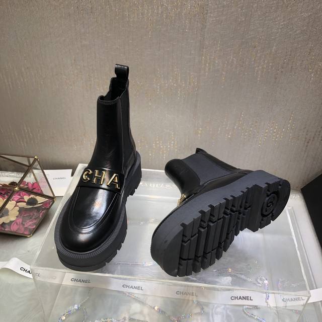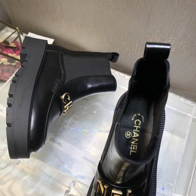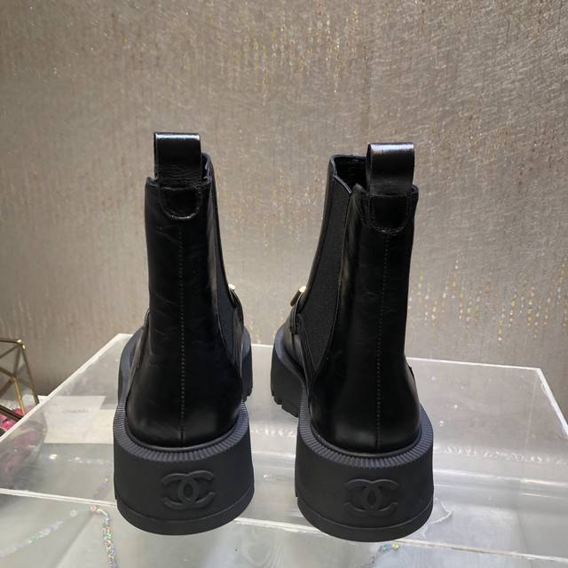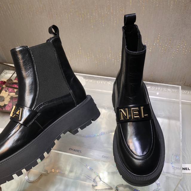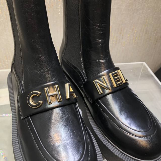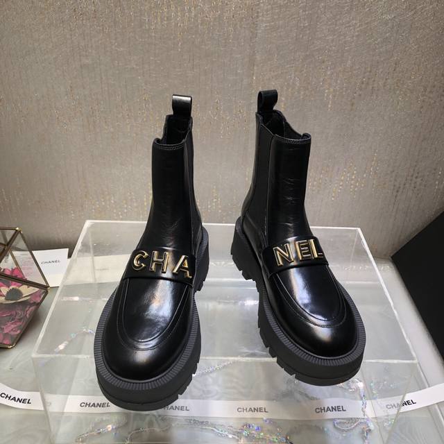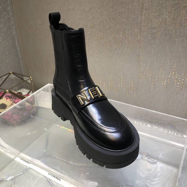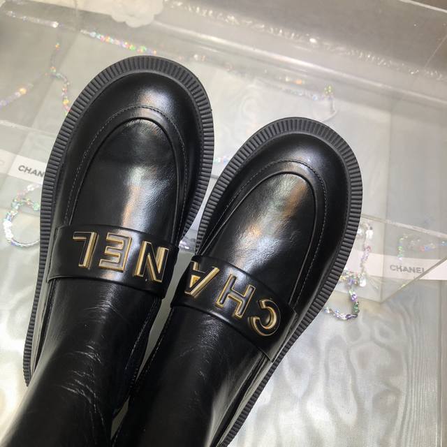 靴子出 顶级品质 Chane*小香24B秋冬新品黑金字母乐福鞋~厚底松紧切尔西短靴原版定制黑金凸面立体五金扣 百搭有调性 超级好穿的一双厚底靴 !