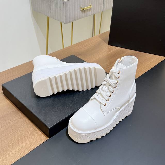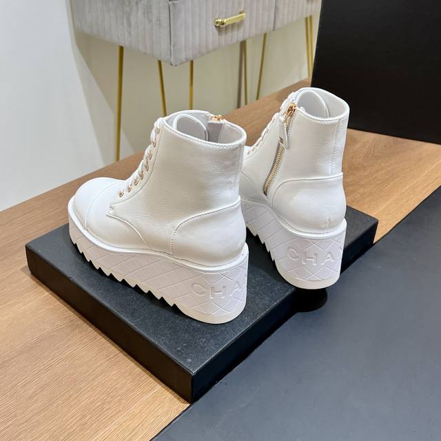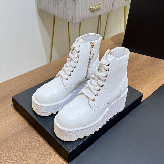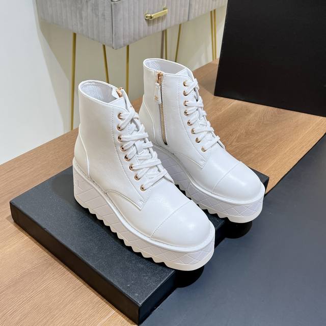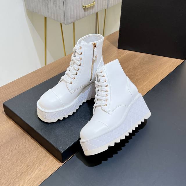 超级好看,又轻,又增高。谁穿谁超模,少女们的心头爱真的是帅气时尚的代表 轻便大底和拉链有chanel字母点缀 低调不失奢华!简约时尚个性又大气!