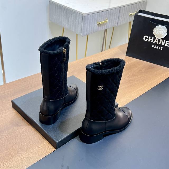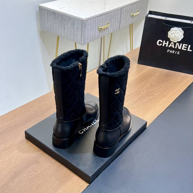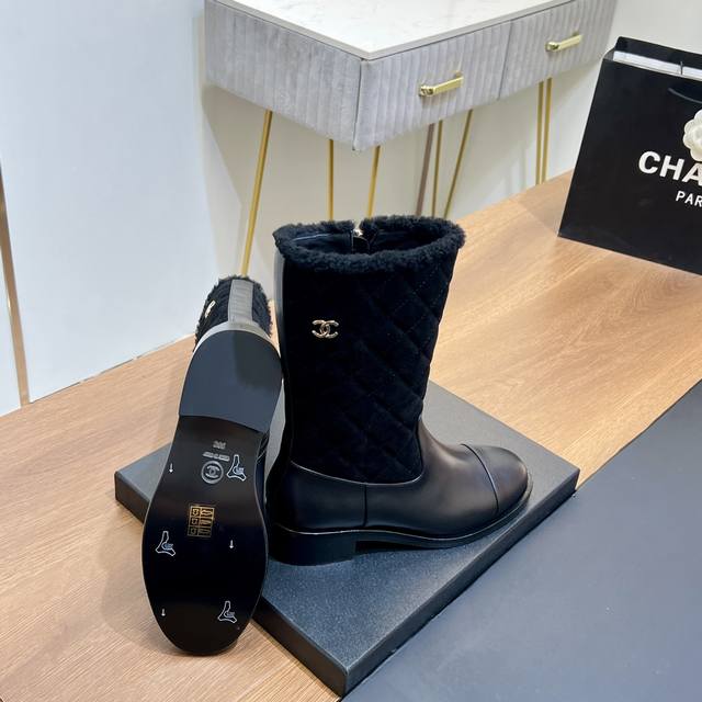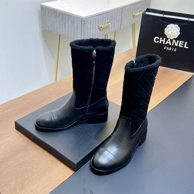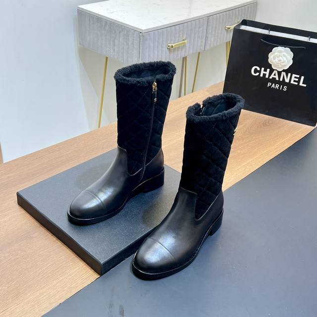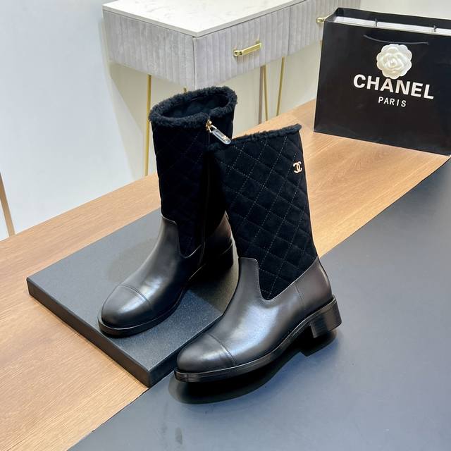 Chane*|小香 经典简约菱格毛口高跟短靴马丁靴 中筒靴