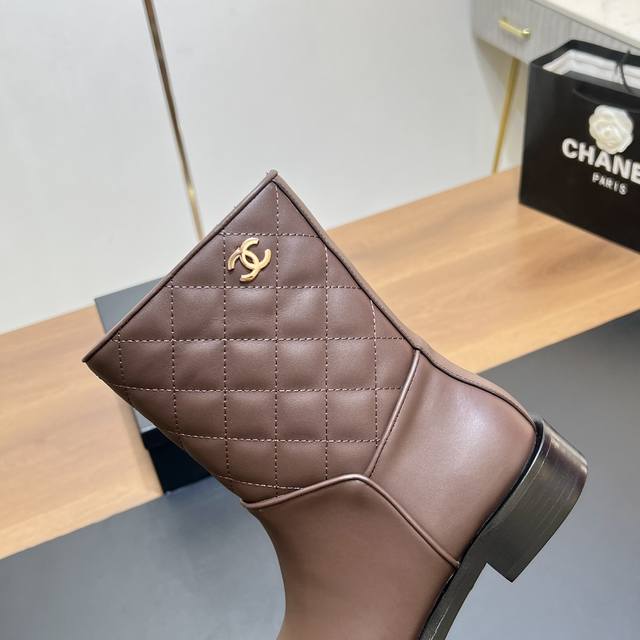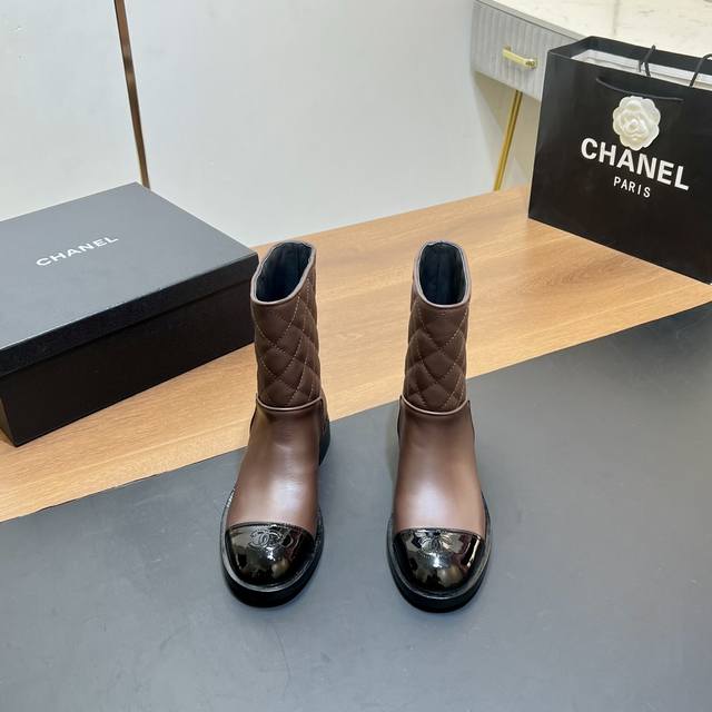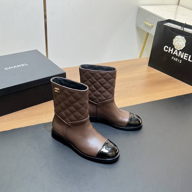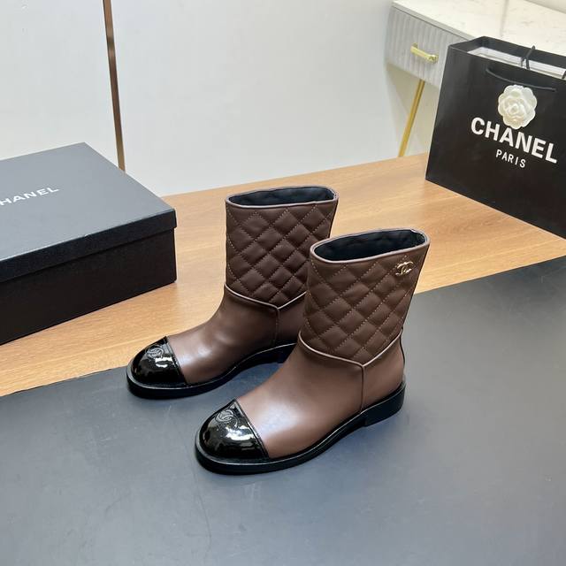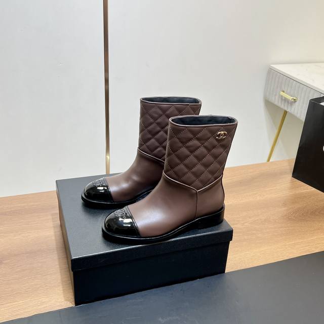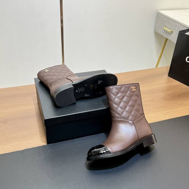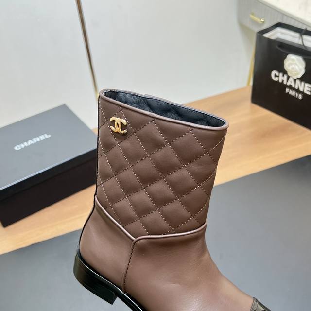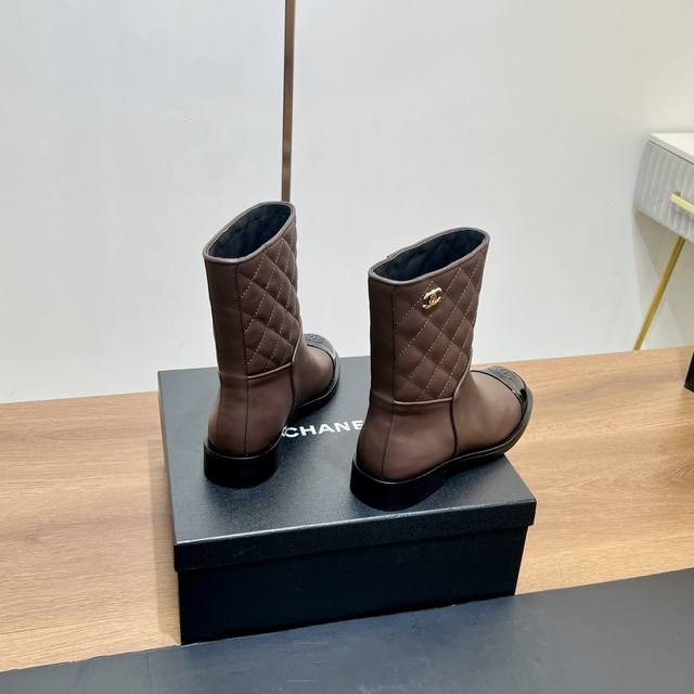 Chane*|小香 经典简约菱格短靴马丁靴 中筒靴