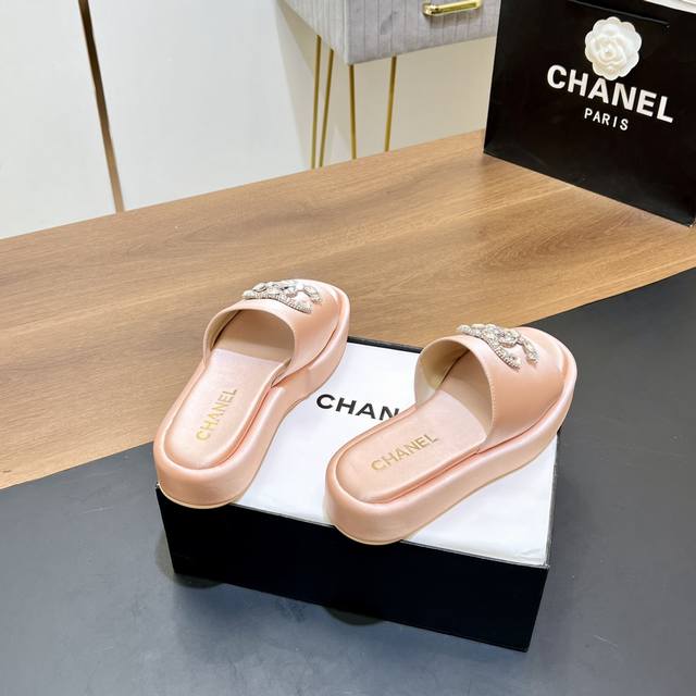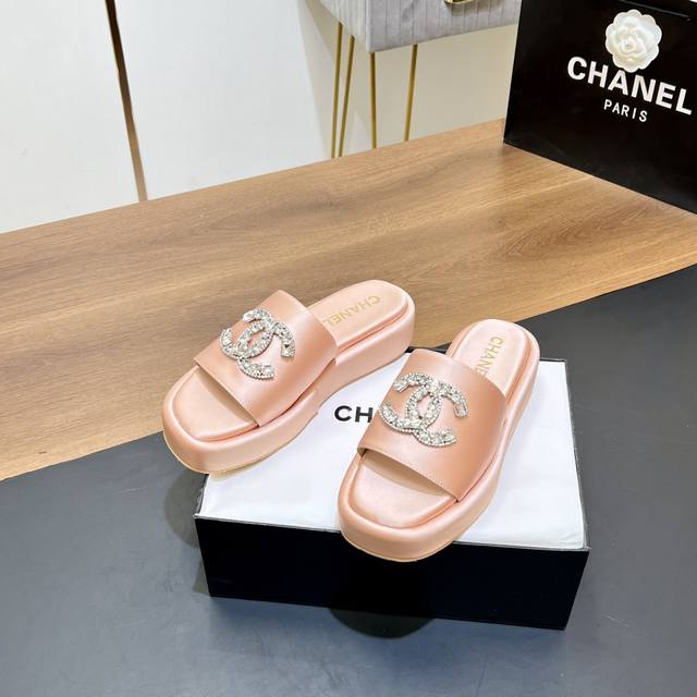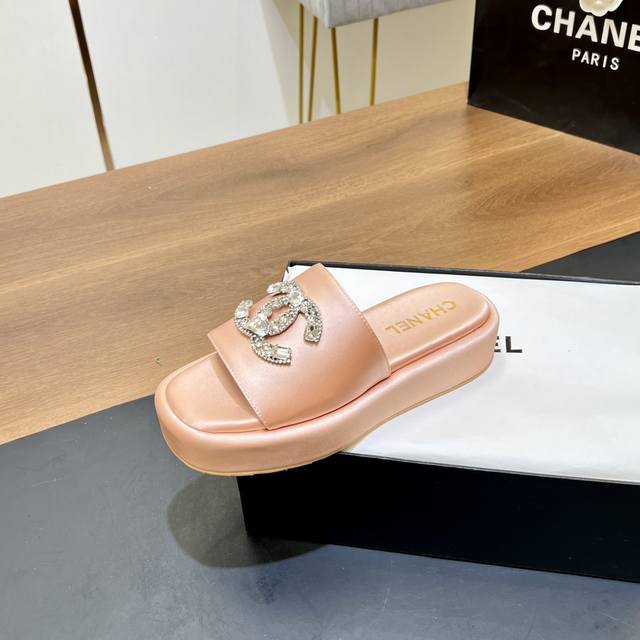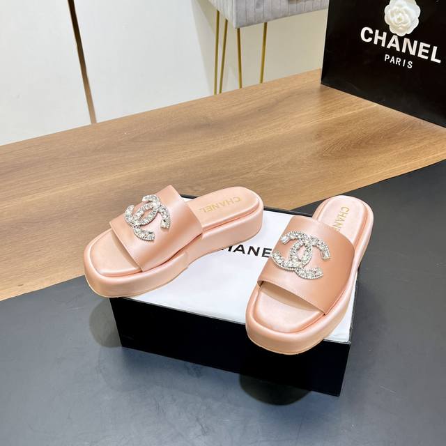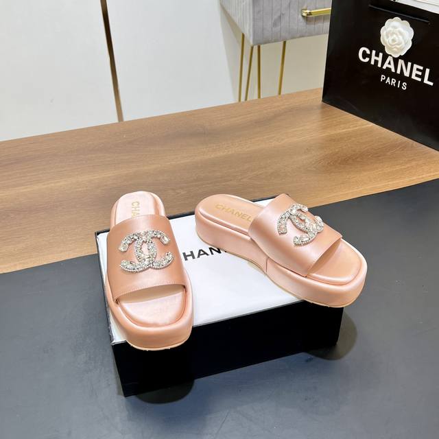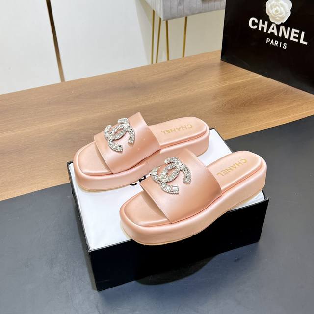 Chanel 24C早秋新品防水台厚底水钻拖鞋