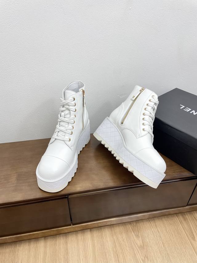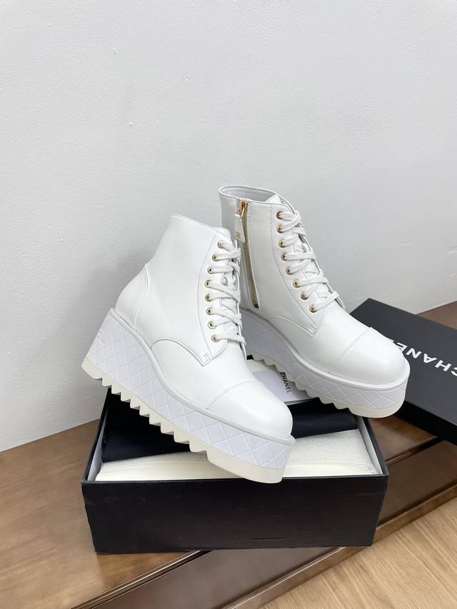 顶级版本chanel 香奈儿 24Ss 小香秋冬新款坡跟松糕厚底侧拉链小短靴