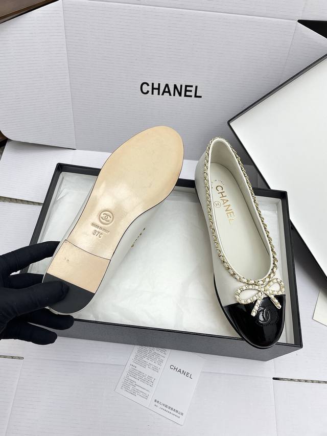 飞机盒10 代购级 Chanel25Ss夏季新款链条蝴蝶结单鞋