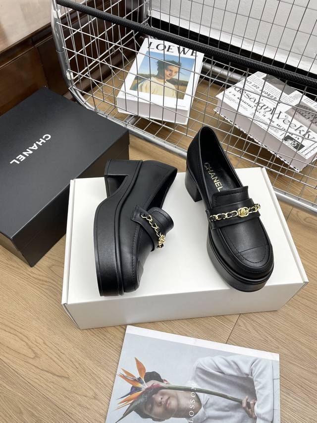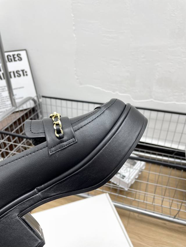 飞机盒10 Chanel 24Ss 新款 链条锁扣增高厚底乐福鞋