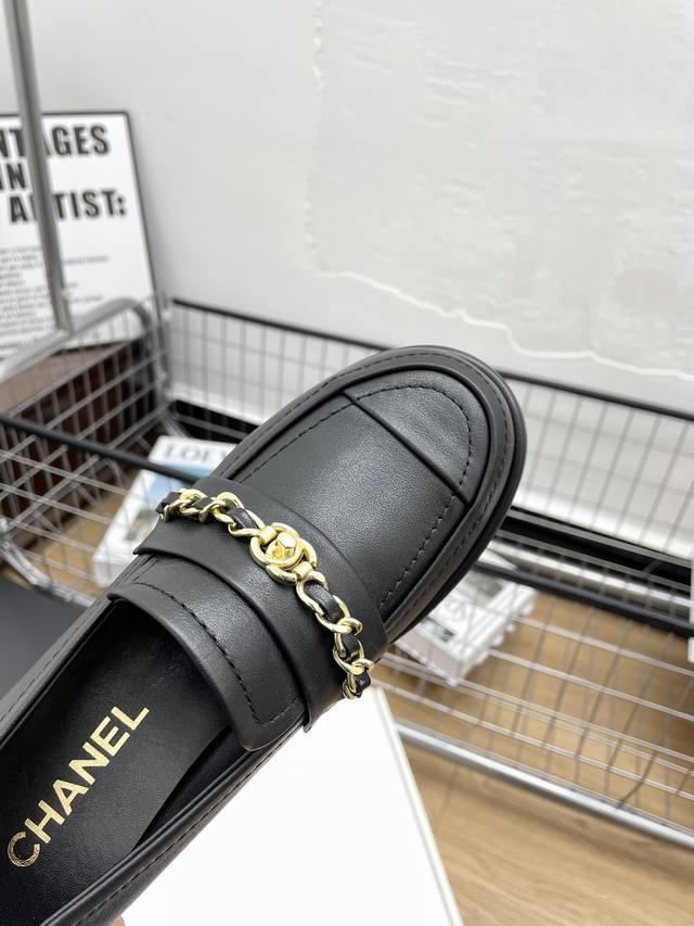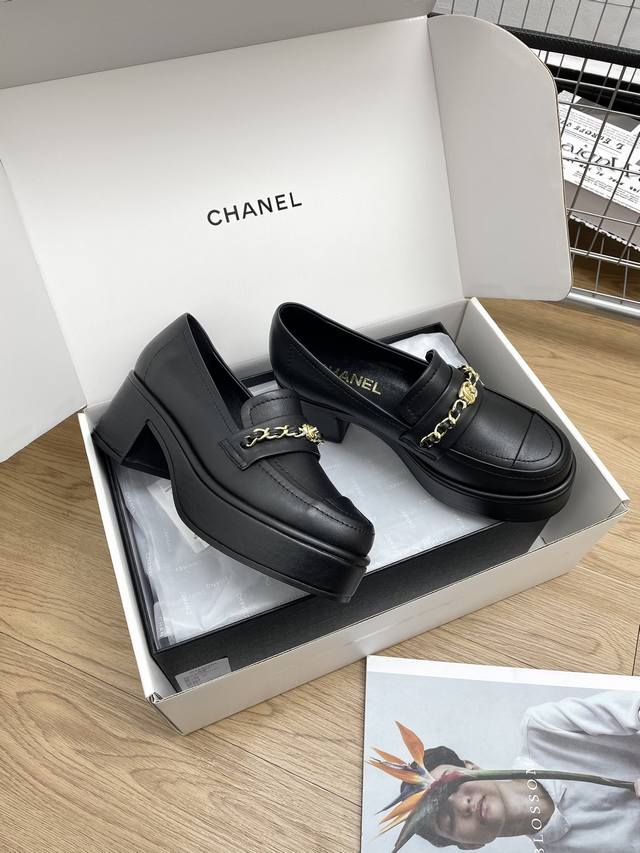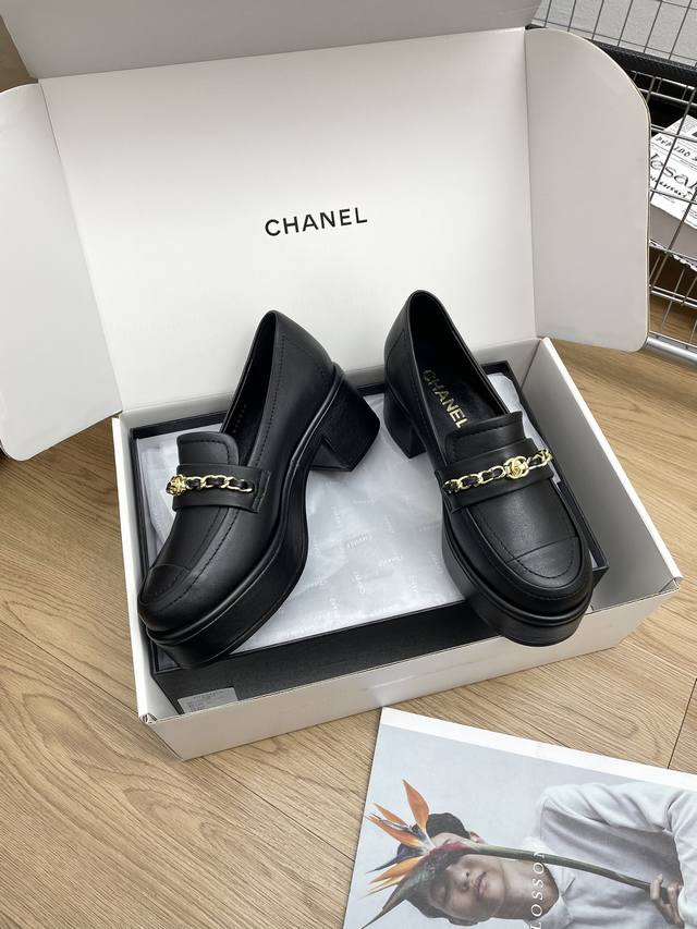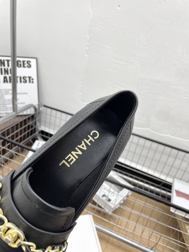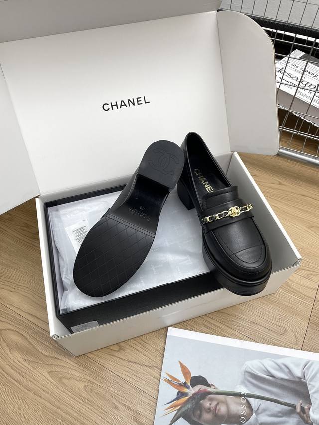 飞机盒10 Chanel 24Ss 新款 链条锁扣增高厚底乐福鞋 女神系列,拥有香家特色优雅名媛气质,超级耐看,让人无法抗拒,心动ing 鞋面:进口小牛油皮 哑