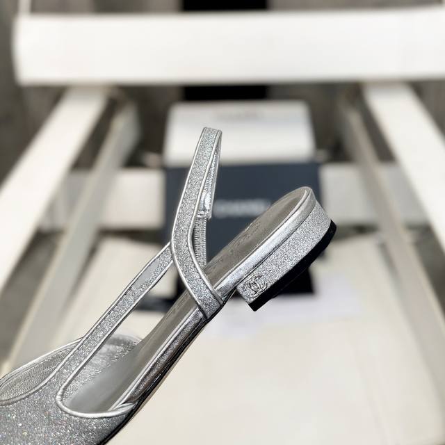 / 香奈儿最新系列,出厂价 粗跟方头拼色百搭高跟后空女凉鞋 材质:鞋面采用进口全粒面混种羊皮拼接真丝绸缎+内里混种羊皮+意大利进口牛皮底size:35–39 跟高:
