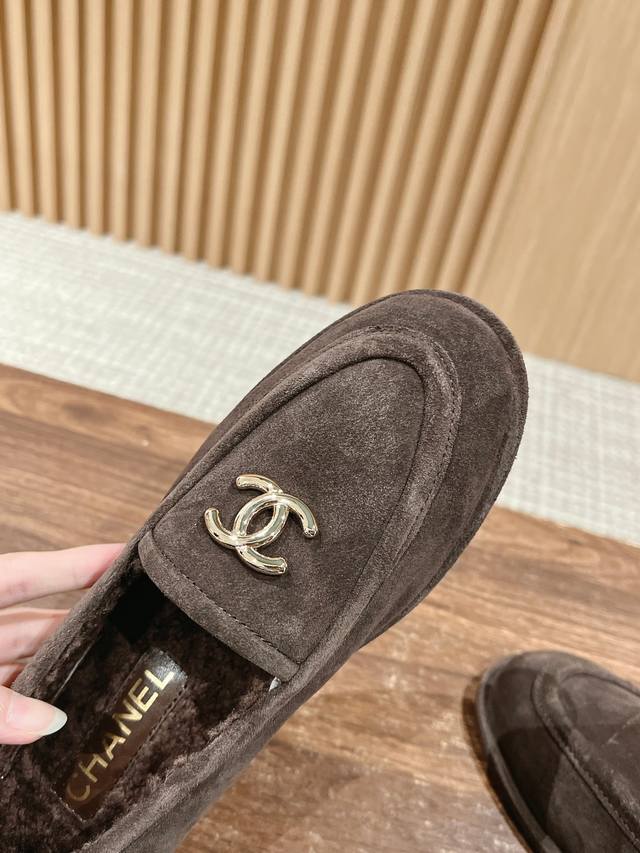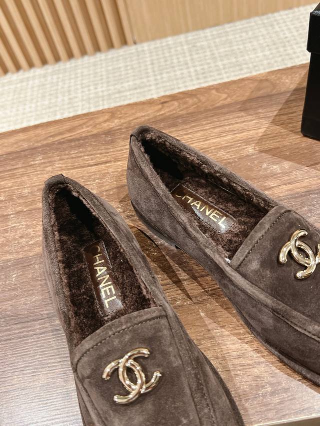 香奈儿美拉德麂皮乐福豆豆鞋 超级可爱 皮毛一体保暖性很好呢 搭配双c Logo搭扣 复古学院风那味就来啦 上脚舒服很软 秋冬配袜子建议拍大穿起来会更舒服一些不箍