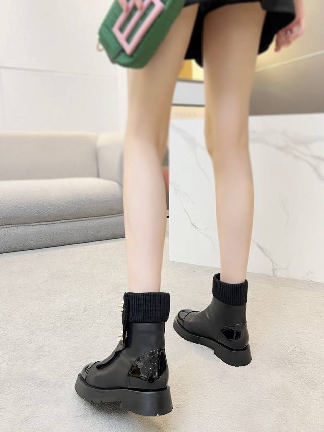 香奈儿链条厚底靴,香家小爆款!真的一眼爱了,精致的双c五金装饰 +毛线桶真的超级有个性,是这款鞋子最大的亮点,醒目而不浮夸的设计,超日常超酷,无论搭配裤子卫衣或