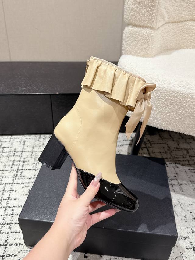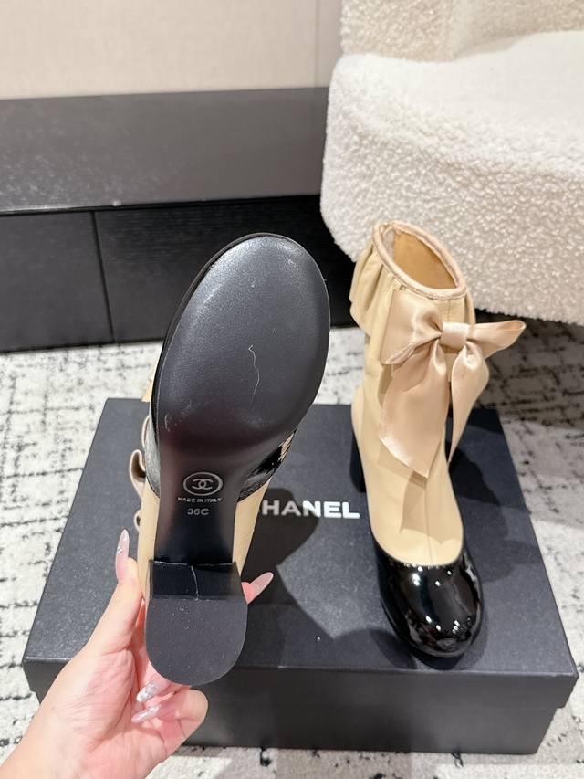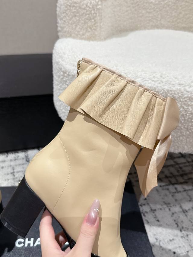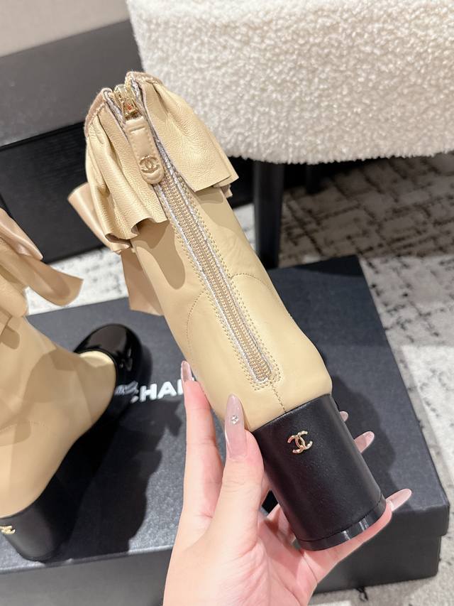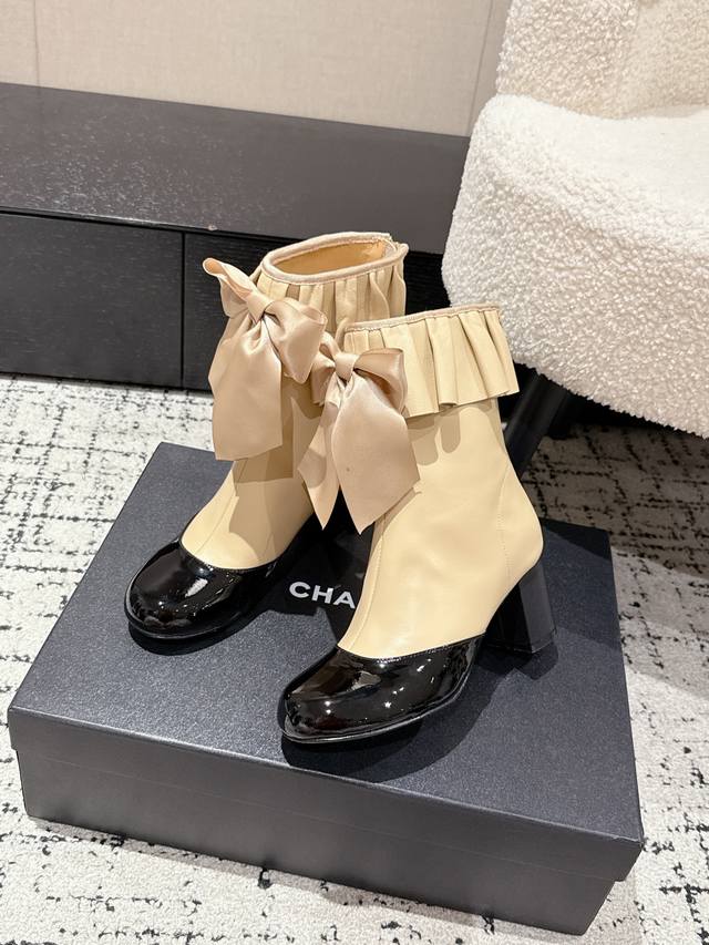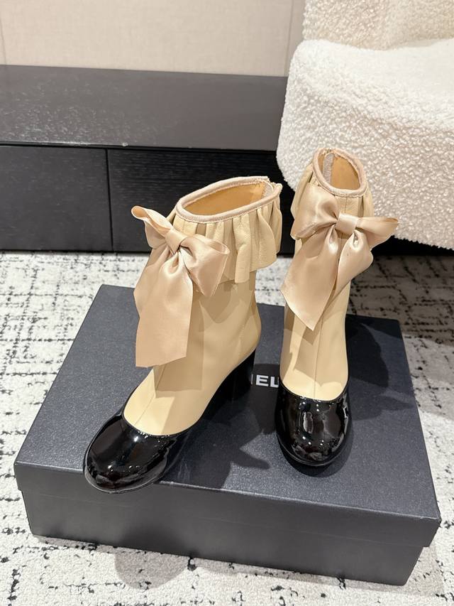 香奈儿 25 Ss 秋冬秀场新品 小香双C蝴蝶结褶皱弹力 短靴