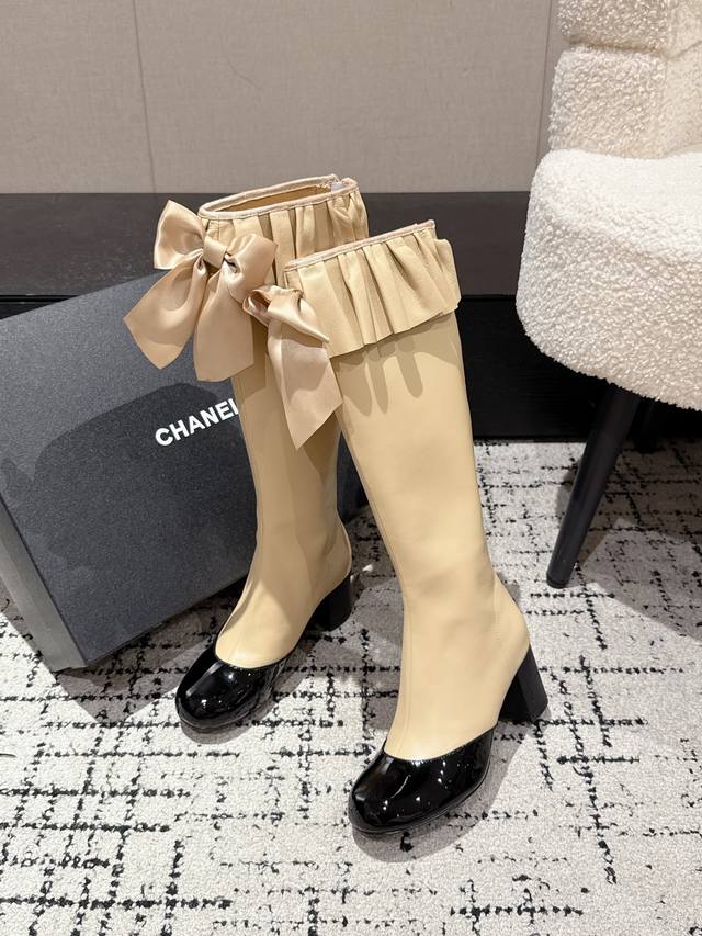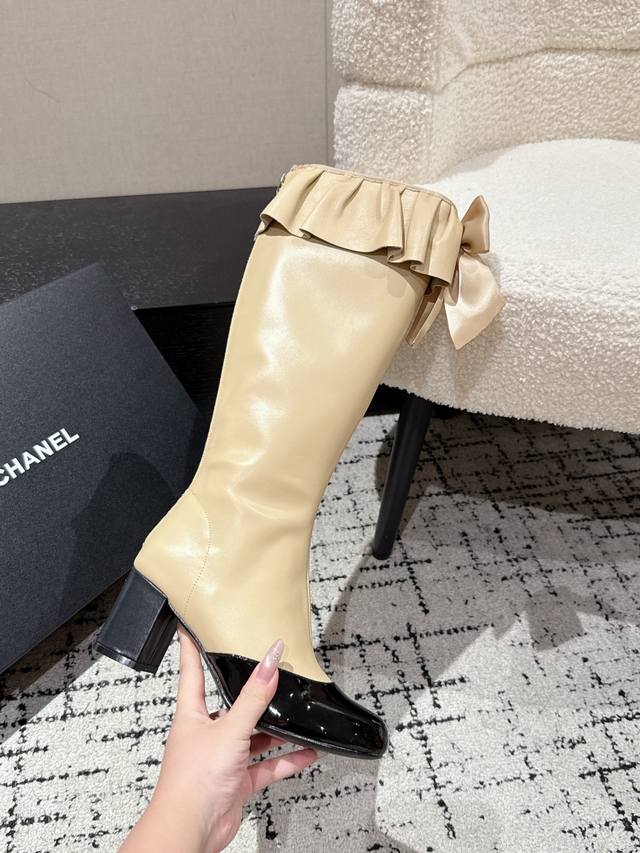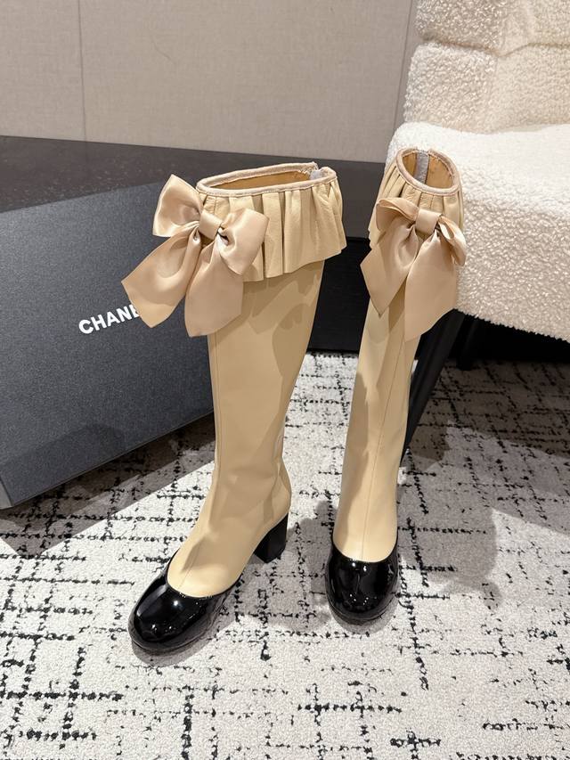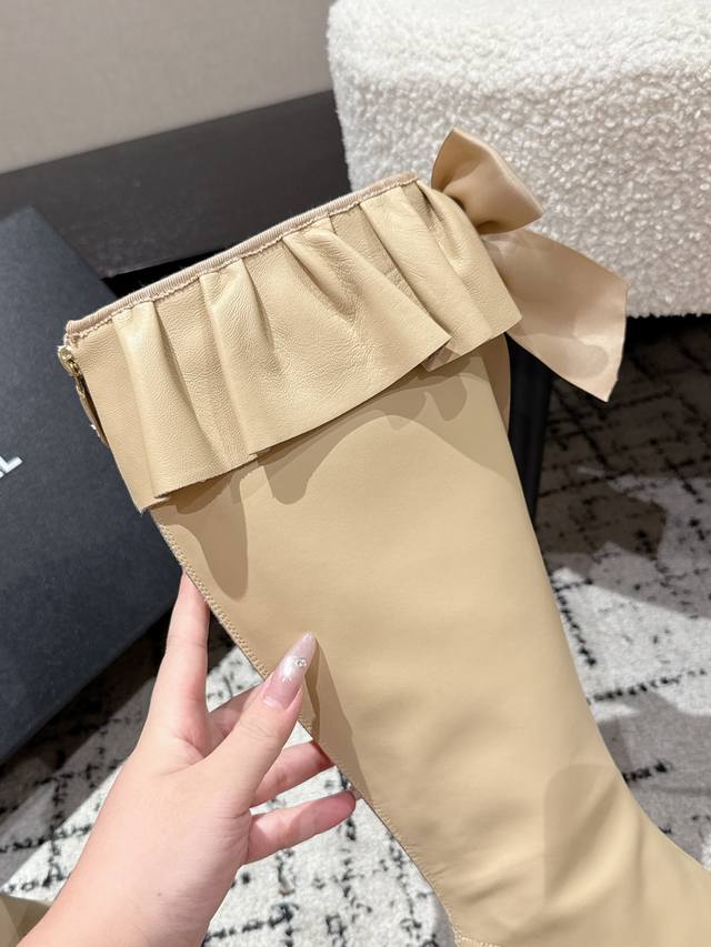 香奈儿 25 Ss 秋冬秀场新品 小香双C蝴蝶结褶皱弹力 长靴