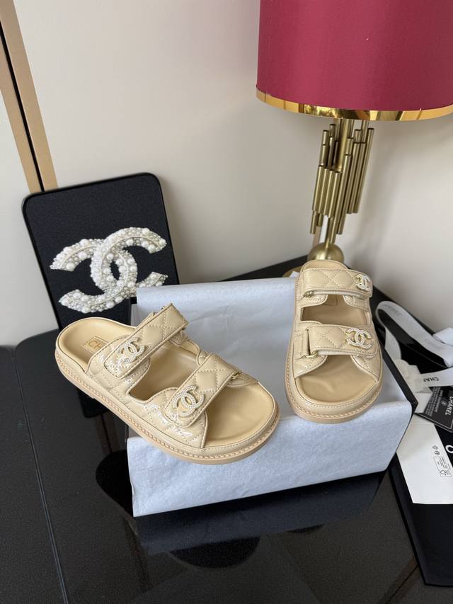 香奈儿2025春夏最新面料专柜主推魔术贴沙滩凉鞋新色系列上新