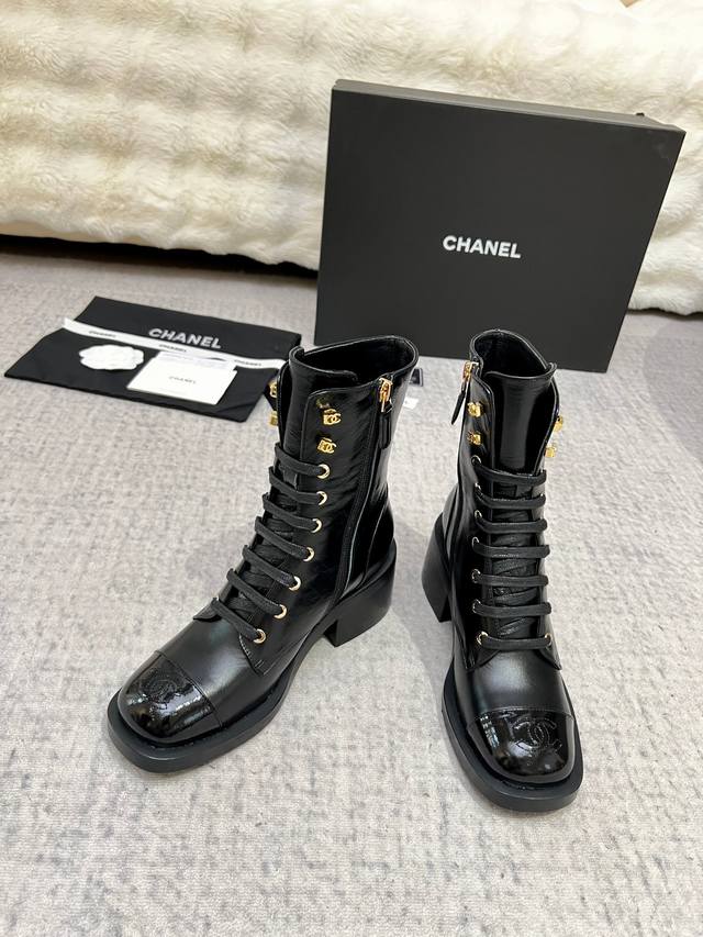香奈儿2025马丁靴,经典与时尚碰撞 黑、白、裸色等配色超绝,拼接设计+金属扣细节,又酷又优雅,穿上气场直接拉满,时髦精必备,谁懂香奶奶的审美啊 面料:牛皮,油