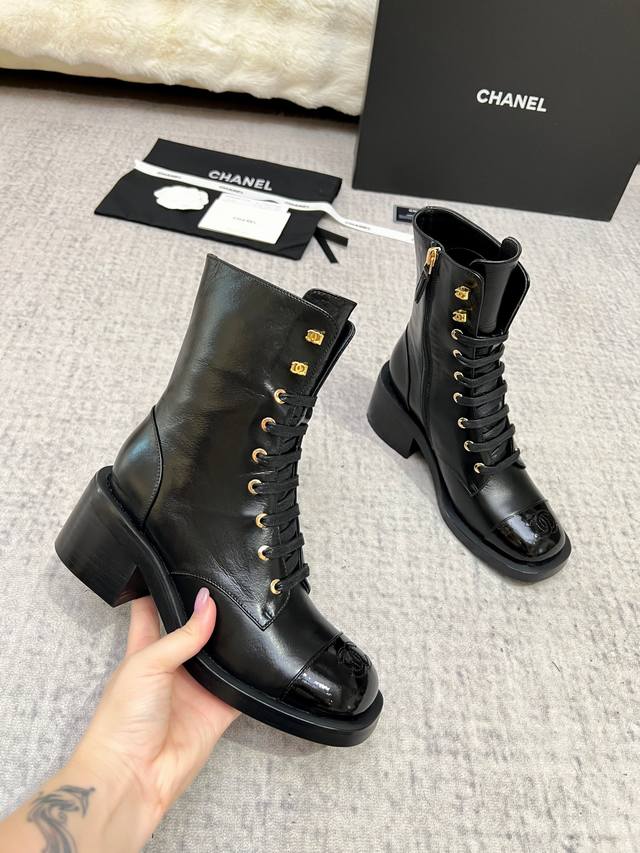 香奈儿2025马丁靴,经典与时尚碰撞 黑、白、裸色等配色超绝,拼接设计+金属扣细节,又酷又优雅,穿上气场直接拉满,时髦精必备,谁懂香奶奶的审美啊