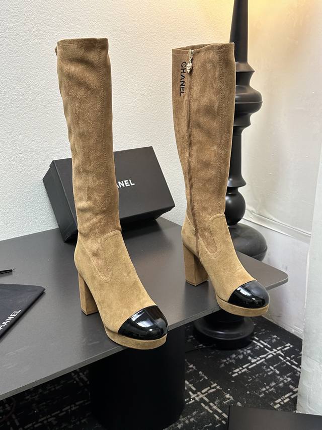 厚底粗跟防水台优雅增高拉链女靴 筒高38㎝,小腿围33.5厘米,脚踝26厘米