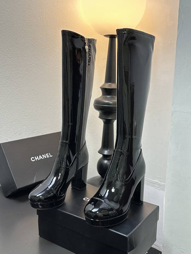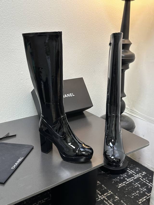 厚底粗跟防水台优雅增高拉链女靴 筒高38㎝,小腿围33.5厘米,脚踝26厘米