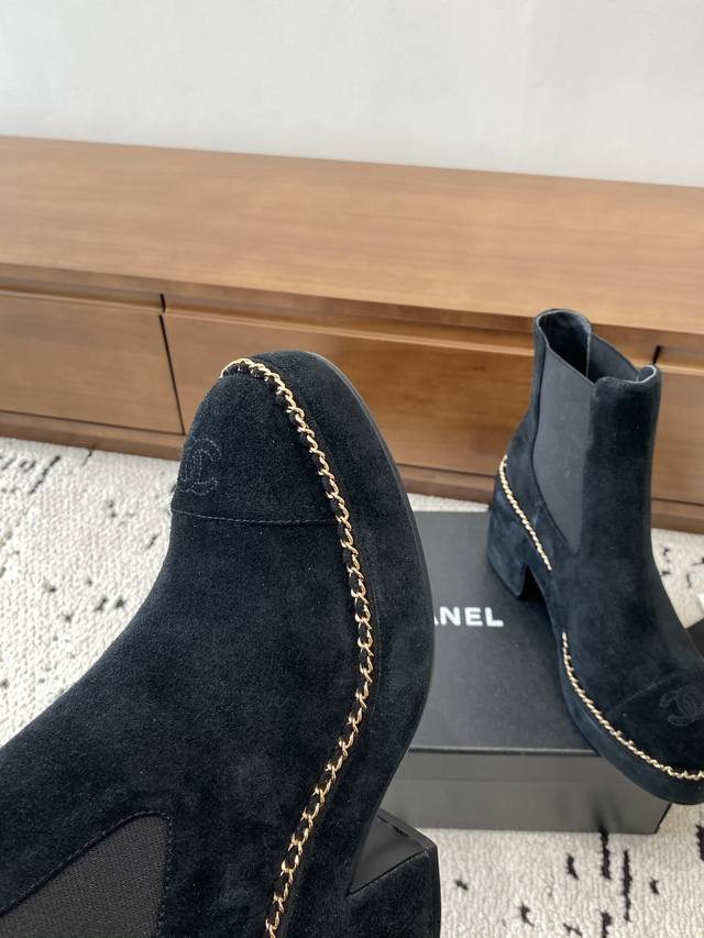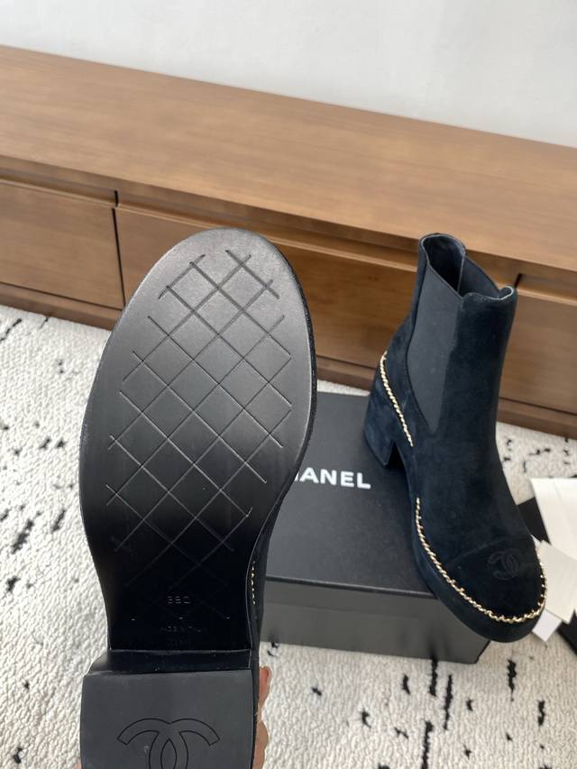 大底上沿用了香奈儿经典链条,小美美特别喜欢,这是香奈儿今年秋冬打造的爆款,加上整个靴用全粒面牛皮打造,两边釆用橡皮筋替代拉链,懒人必备,上脚超级舒服,今年秋冬必备款