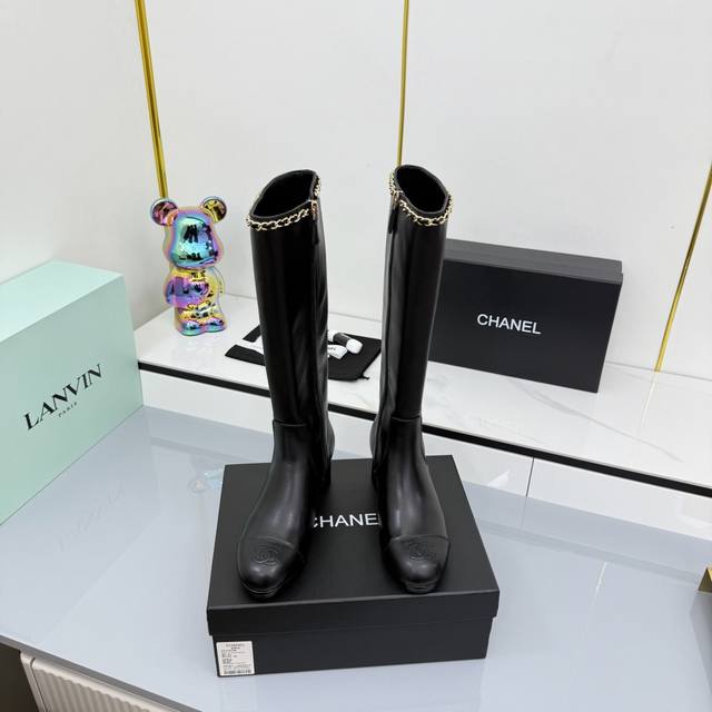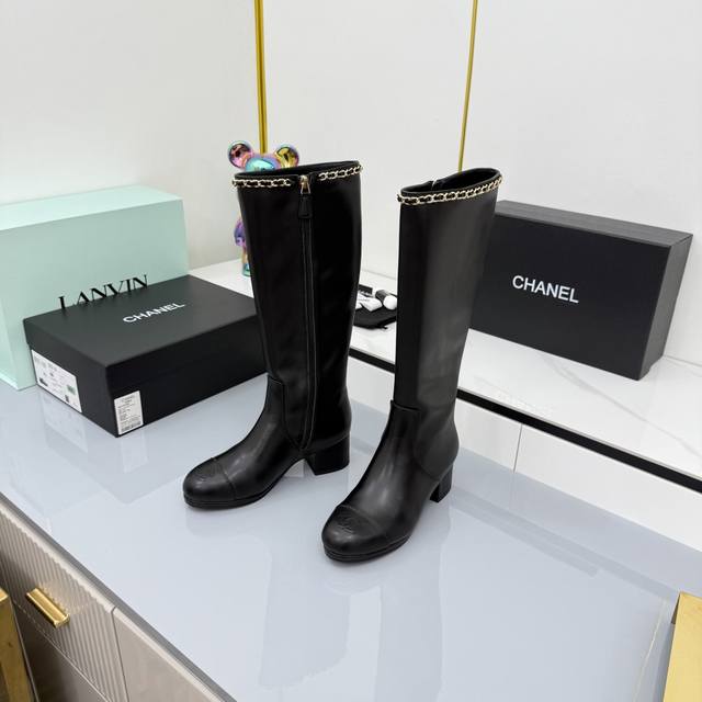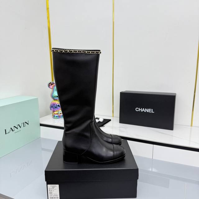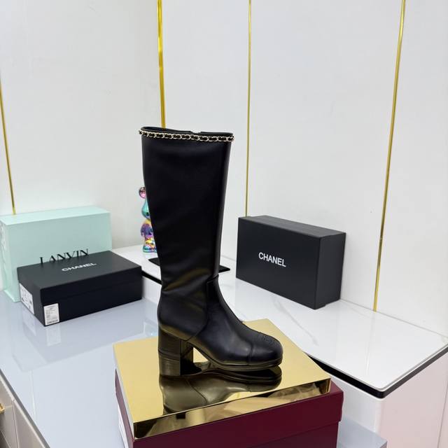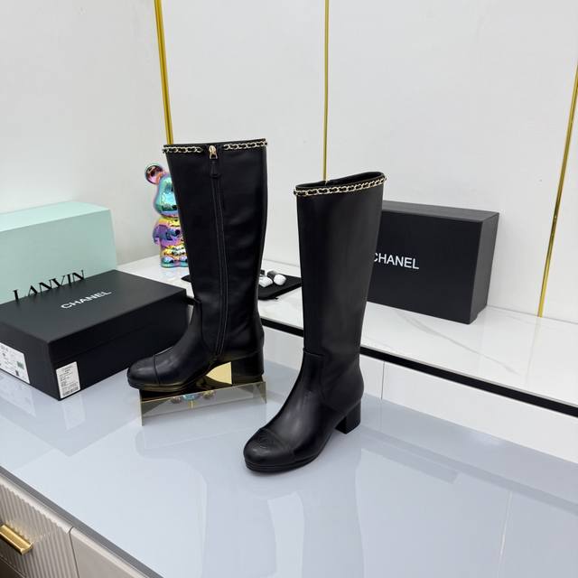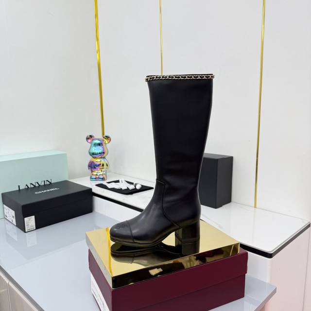 / 2025香奈儿新款长靴上新啦 经典黑金配色,链条装饰拿捏精致感,粗跟走路稳还显气场 穿上仿佛自带“时髦滤镜”,搭配裙子裤子都超绝,是能让鞋柜升级的狠货,香奶奶果
