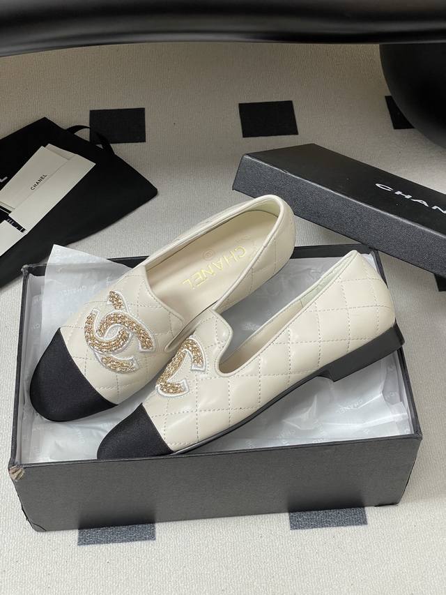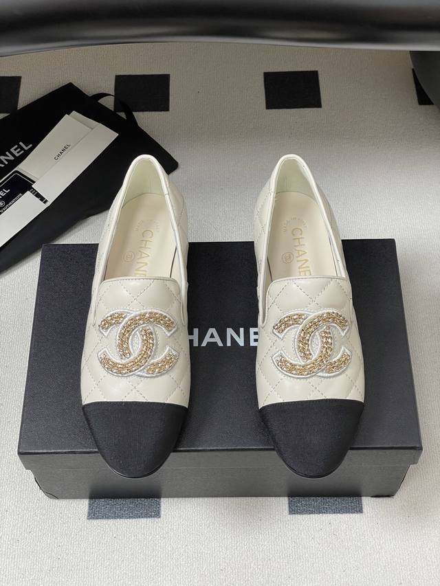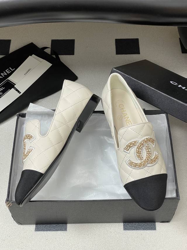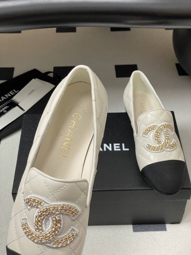 25Fw早秋新款Chanel 小香经典菱格链条双C扣乐福鞋平底深口拼色单鞋