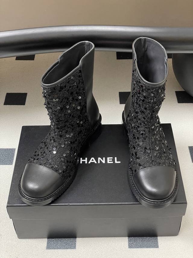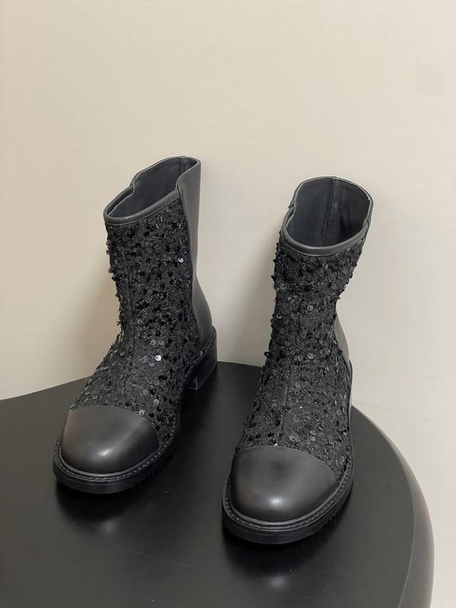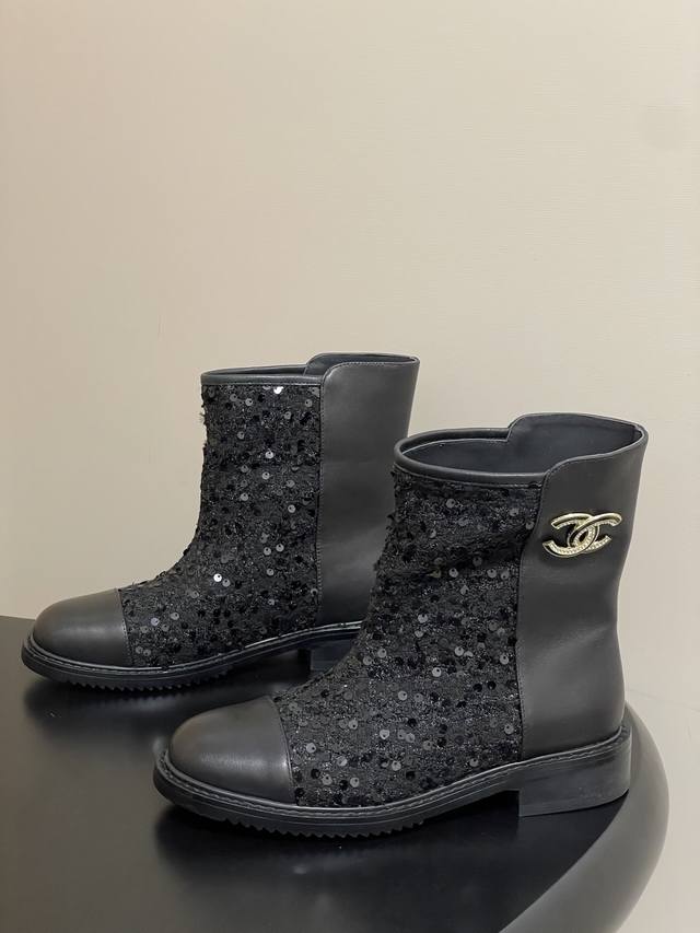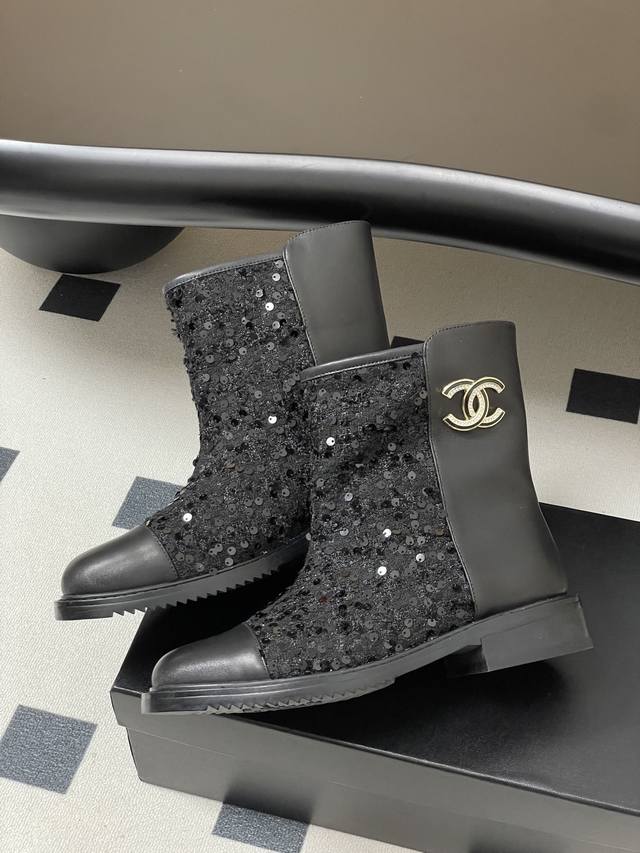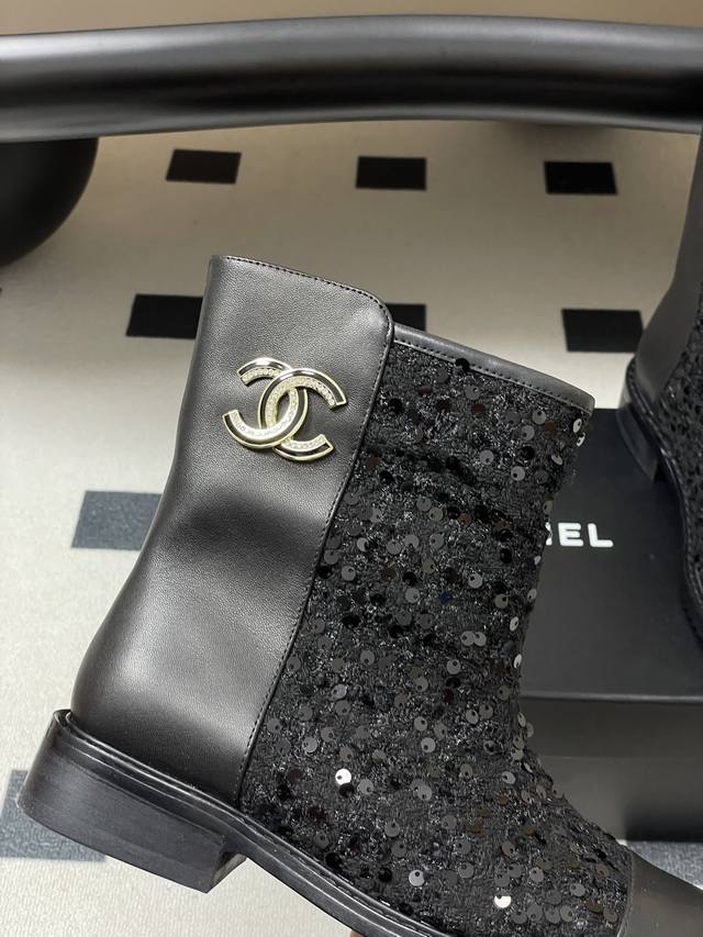 25Fw秋冬新款Chanel小香双C扣短靴 毛呢短筒及踝靴厚底短靴