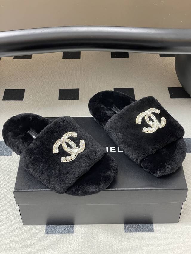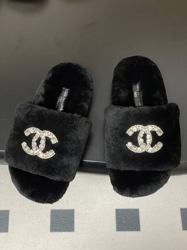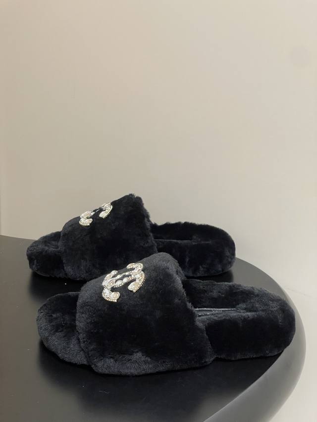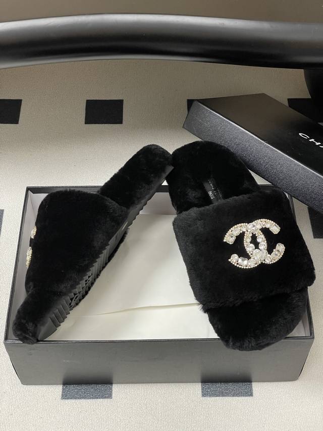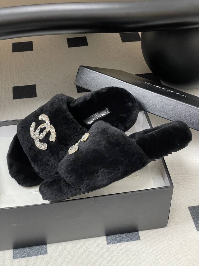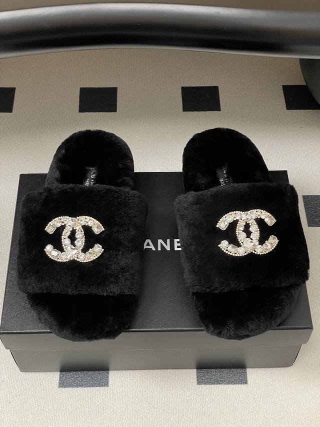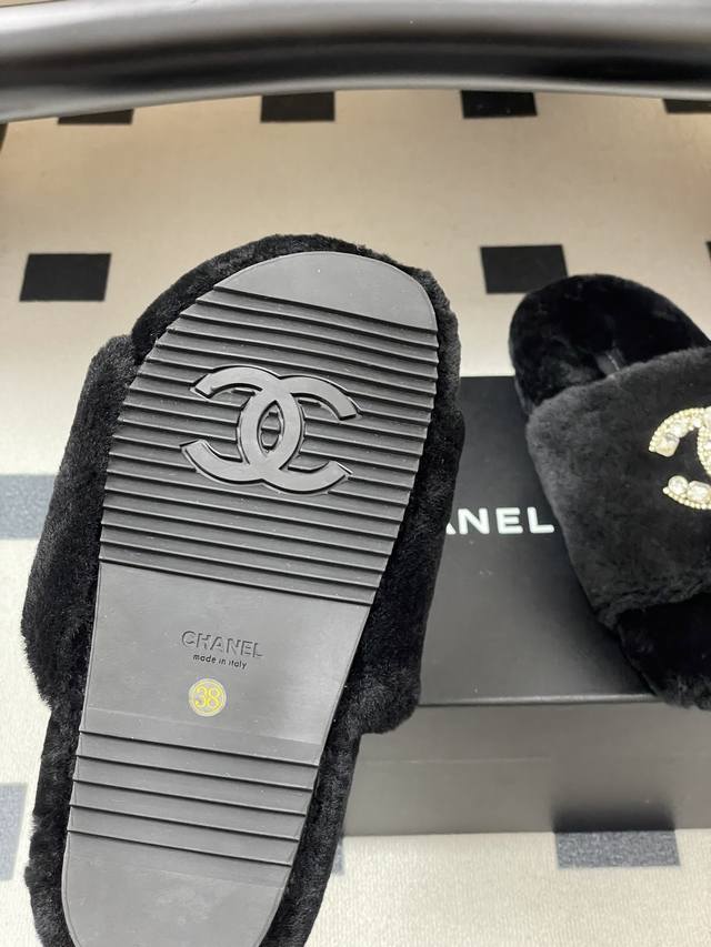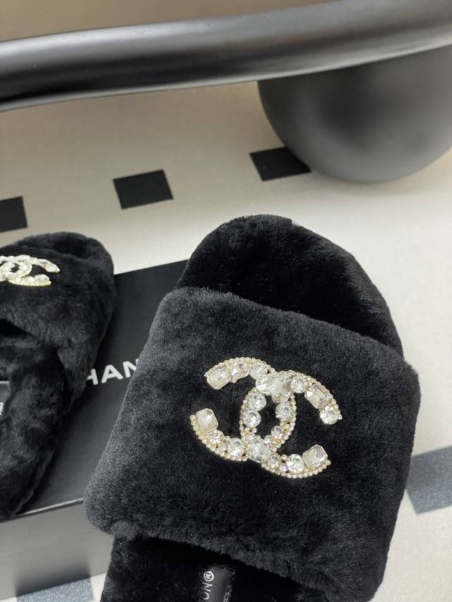 25Ss秋冬新款 Chanel 小香经典双C羊毛拖鞋厚底毛毛鞋穆勒毛拖鞋