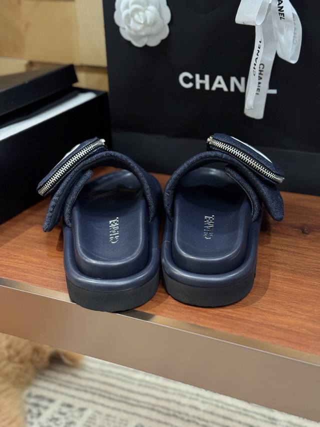 小香C家2025P早春度假系列,超级时尚的荷包半拖,满满的老钱风,小香专属的Logo拉链小包包设计,超级创新的设计,发泡超轻大底,更是暴走一天都毫无压力