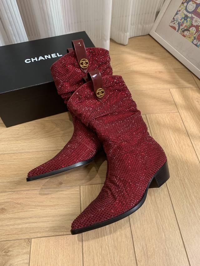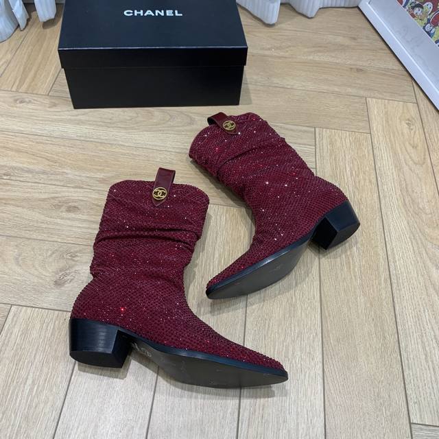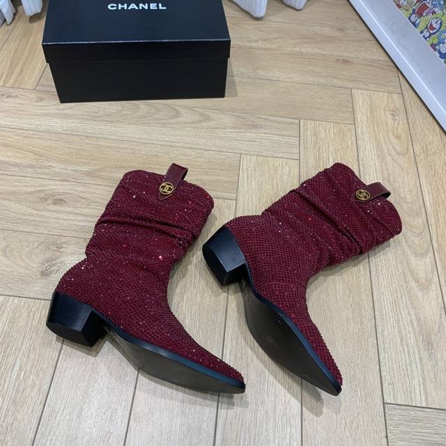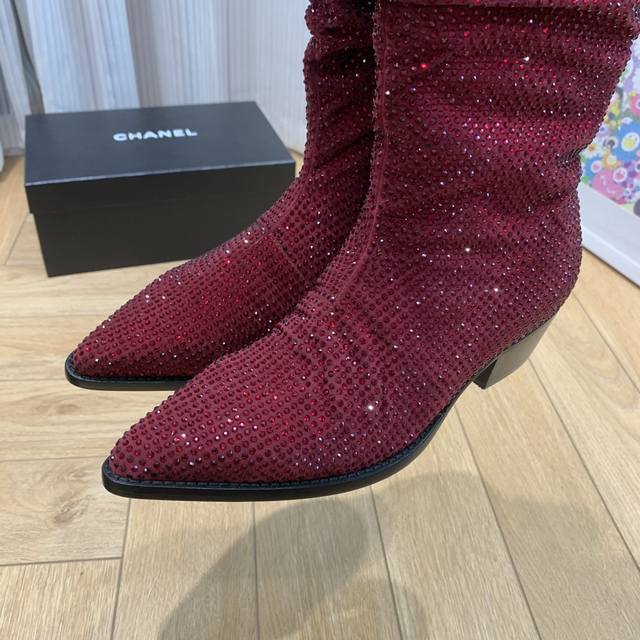 Chane*|小香24B秋冬新品水钻尖头短靴