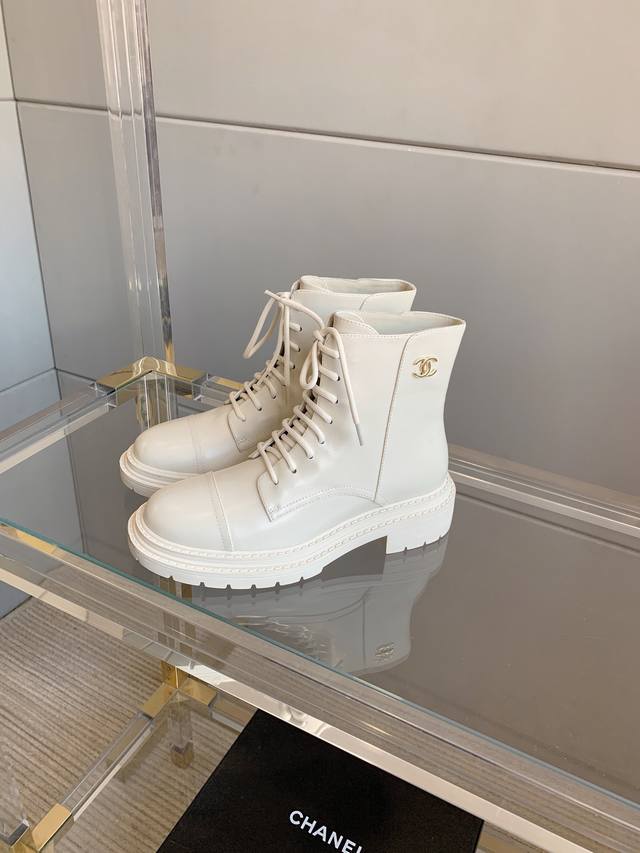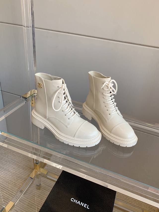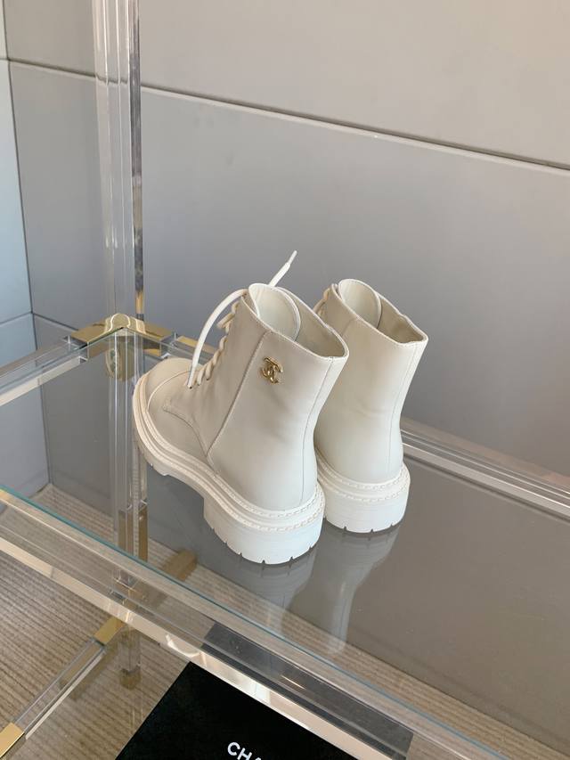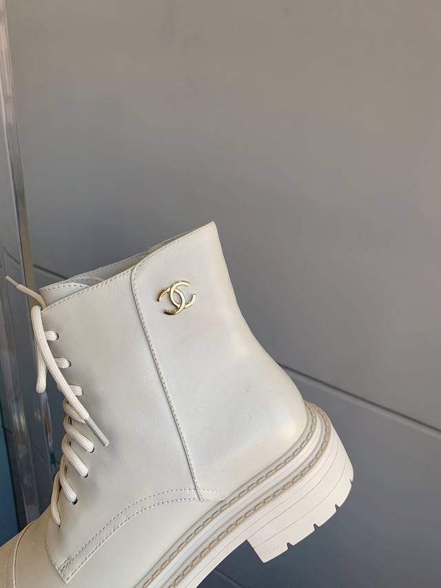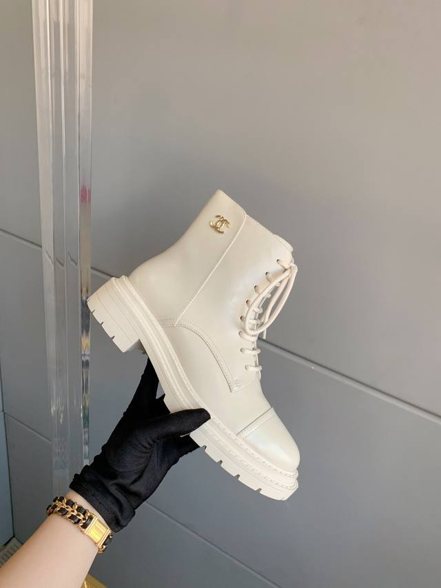 Chane*新款厚底短靴 简约百搭款 鞋面小牛皮 内里垫脚羊皮 耐磨橡胶底 尺码35-39 40定做