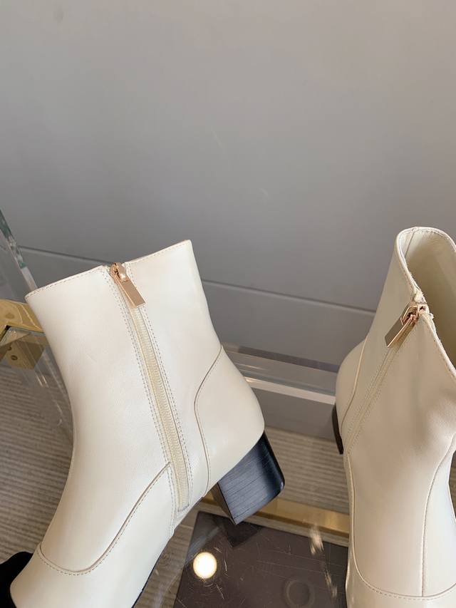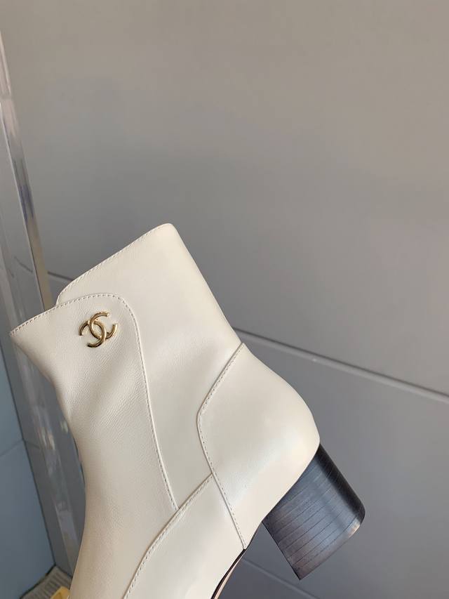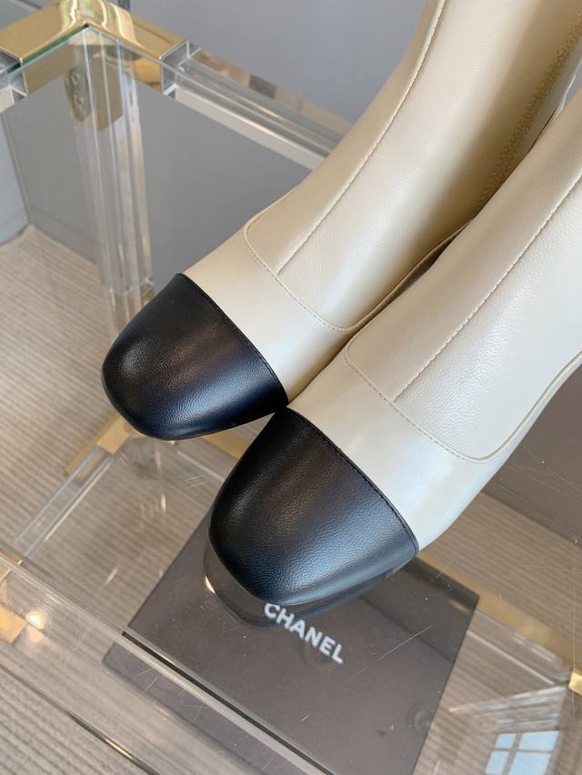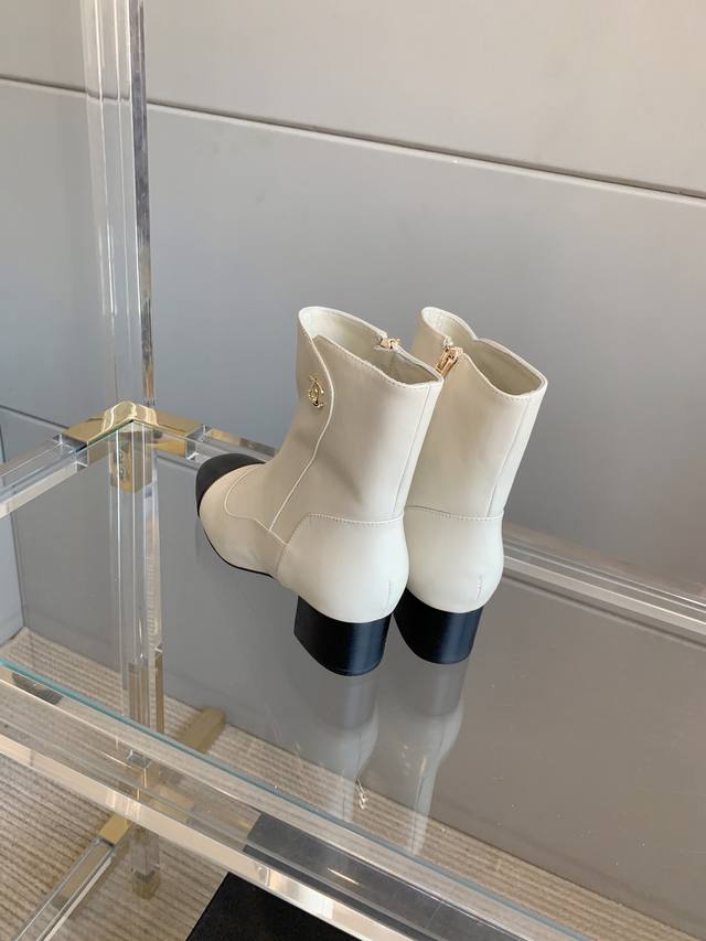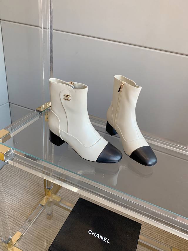 Chane*新款粗跟短靴 简约百搭款 鞋面小牛皮 内里垫脚羊皮 意大利真皮大底 跟高6Cm 尺码35-39 40定做