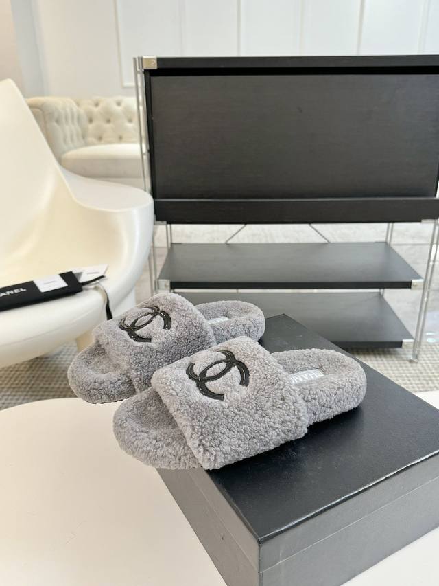Chane* |小香经典四季双c毛毛拖鞋