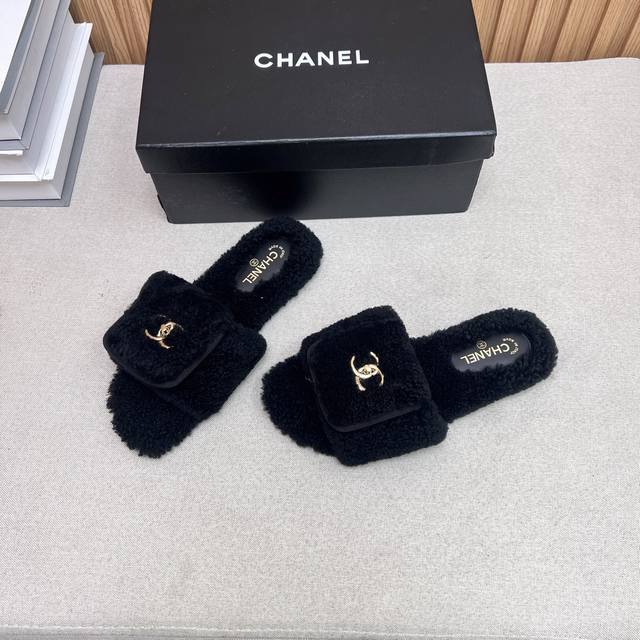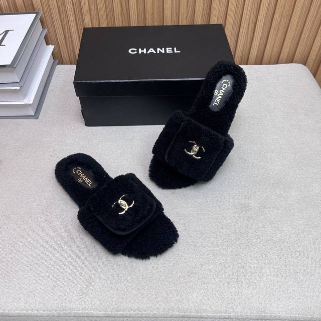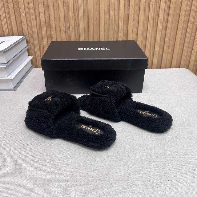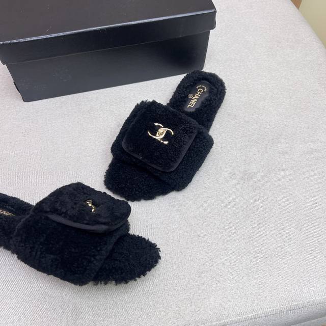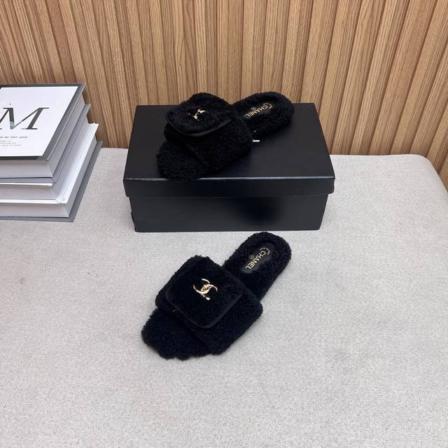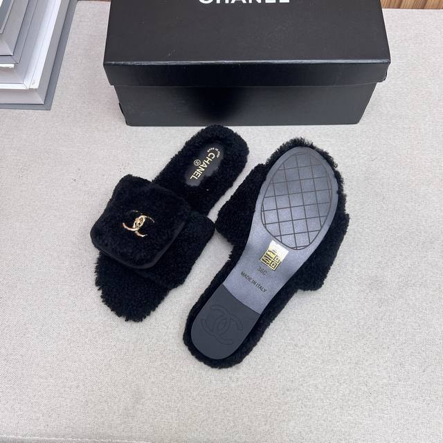 / Chanel小香风香奈儿 2025新款秋冬懒羊羊真羊毛懒人拖鞋 菱格电绣小香毛拖 面料: 澳洲进口羊羔毛 內里: 澳洲进口羊羔毛 大底:原版真皮大底 码数:35