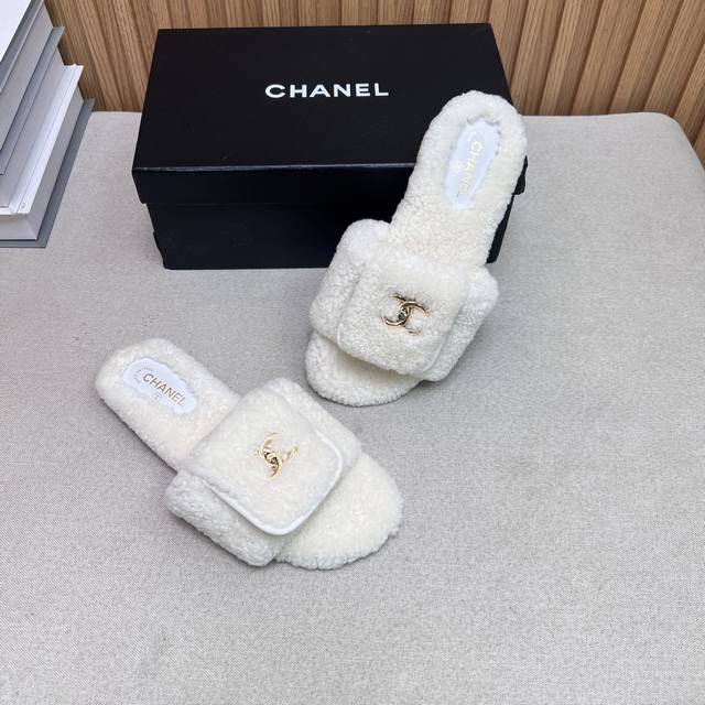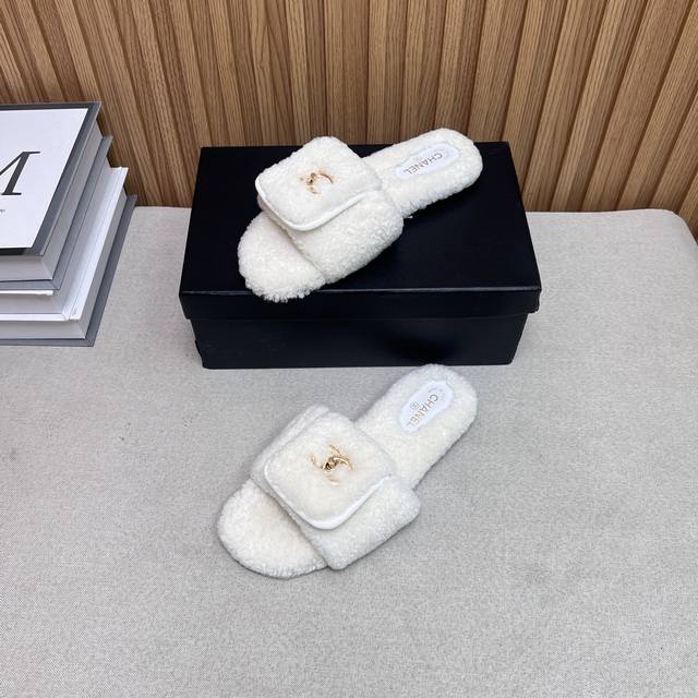 / Chanel小香风香奈儿 2025新款秋冬懒羊羊真羊毛懒人拖鞋 菱格电绣小香毛拖 面料: 澳洲进口羊羔毛 內里: 澳洲进口羊羔毛 大底:原版真皮大底 码数:35