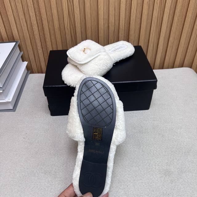 Chanel小香风香奈儿 2025新款秋冬懒羊羊真羊毛懒人拖鞋 菱格电绣小香毛拖 面料: 澳洲进口羊羔毛 內里: 澳洲进口羊羔毛 大底:原版真皮大底 码数:35