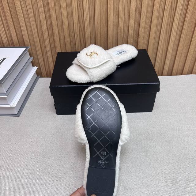 / Chanel小香风香奈儿 2025新款秋冬懒羊羊真羊毛懒人拖鞋 菱格电绣小香毛拖 面料: 澳洲进口羊羔毛 內里: 澳洲进口羊羔毛 大底:原版真皮大底 码数:35