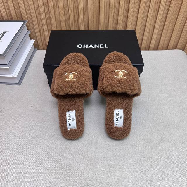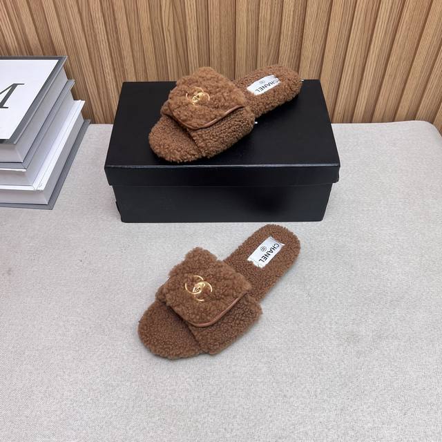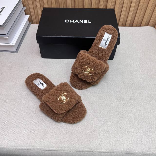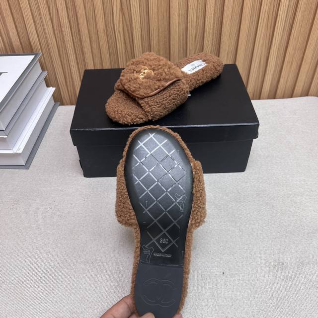 / Chanel小香风香奈儿 2025新款秋冬懒羊羊真羊毛懒人拖鞋 菱格电绣小香毛拖 面料: 澳洲进口羊羔毛 內里: 澳洲进口羊羔毛 大底:原版真皮大底 码数:35