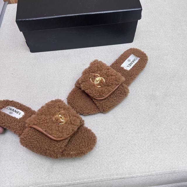 Chanel小香风香奈儿 2025新款秋冬懒羊羊真羊毛懒人拖鞋 菱格电绣小香毛拖 面料: 澳洲进口羊羔毛 內里: 澳洲进口羊羔毛 大底:原版真皮大底 码数:35