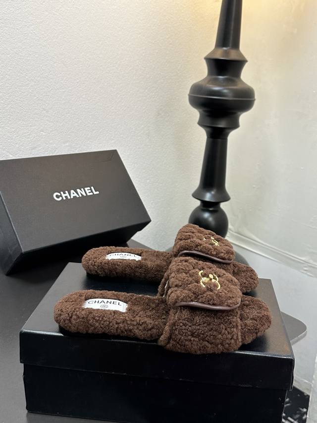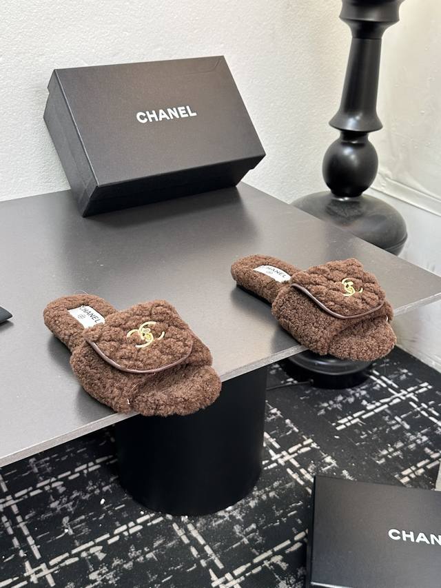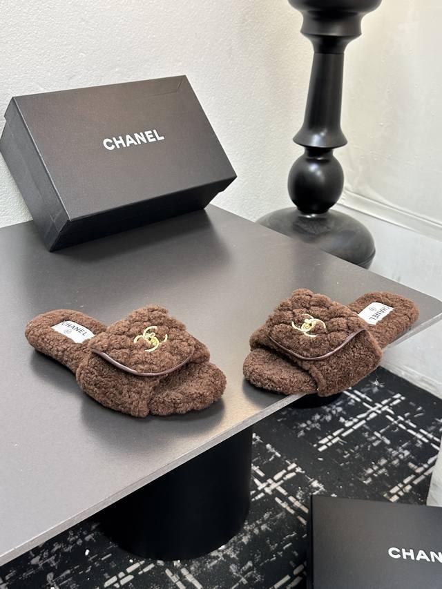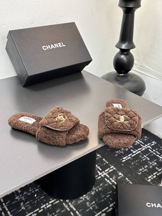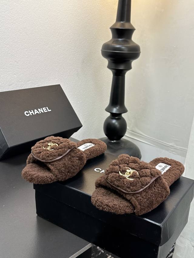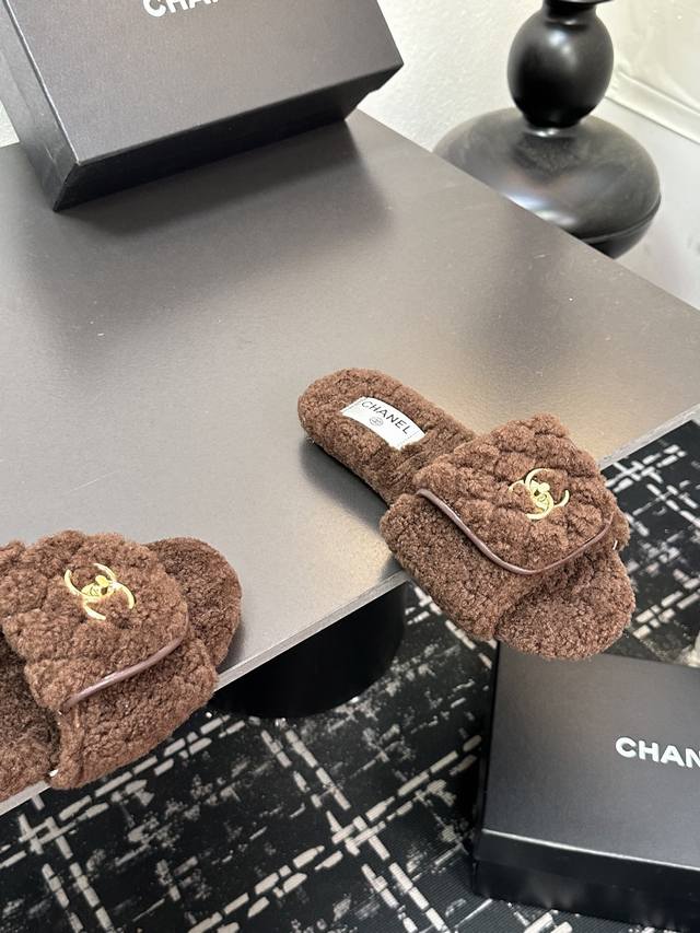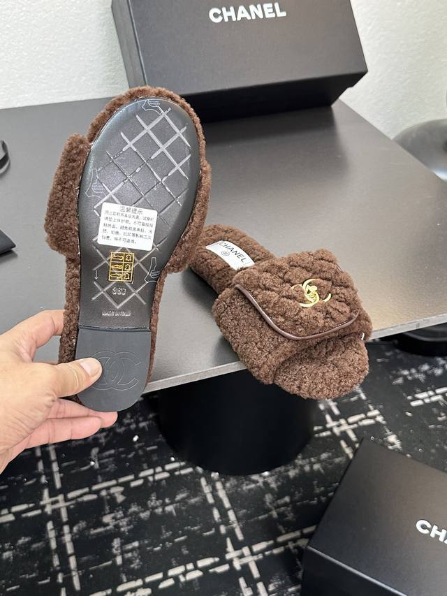 Chanel小香风香奈儿 2025新款秋冬懒羊羊真羊毛懒人拖鞋 菱格电绣小香毛拖 面料: 澳洲进口羊羔毛 內里: 澳洲进口羊羔毛 大底:原版真皮大底 码数:35
