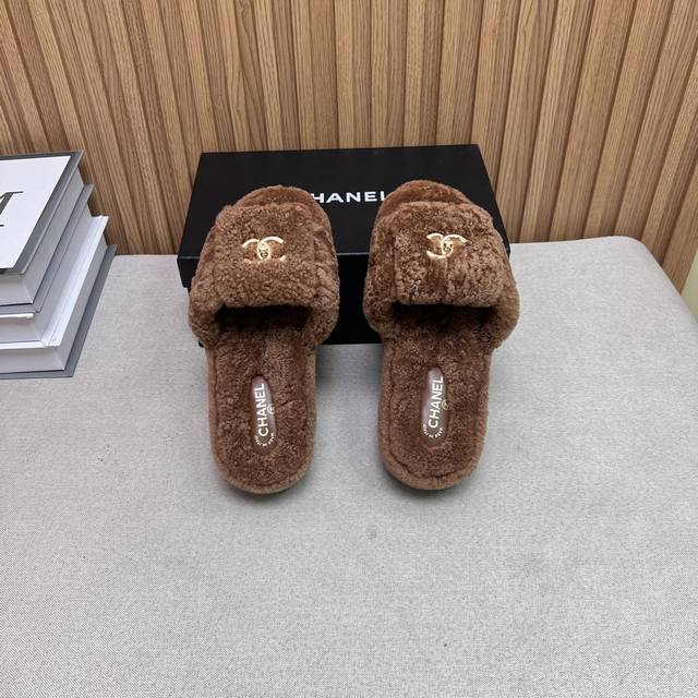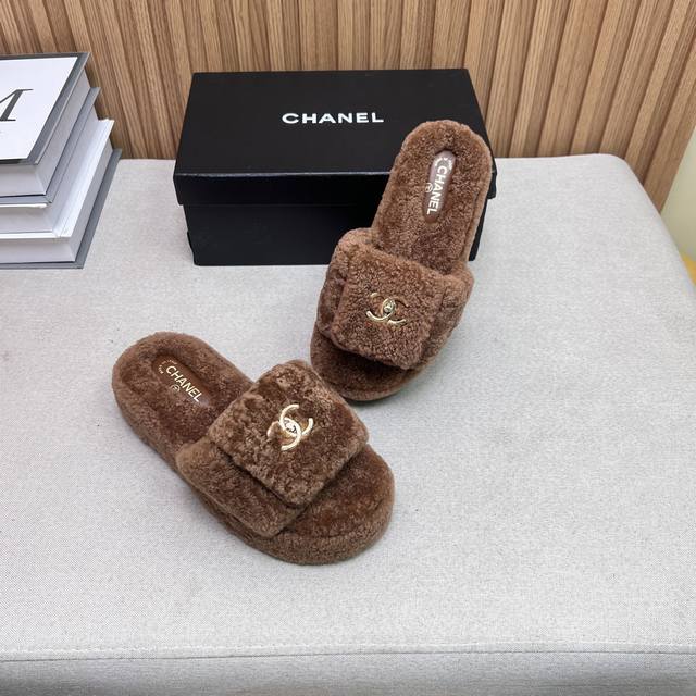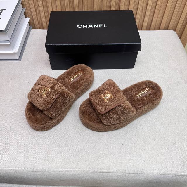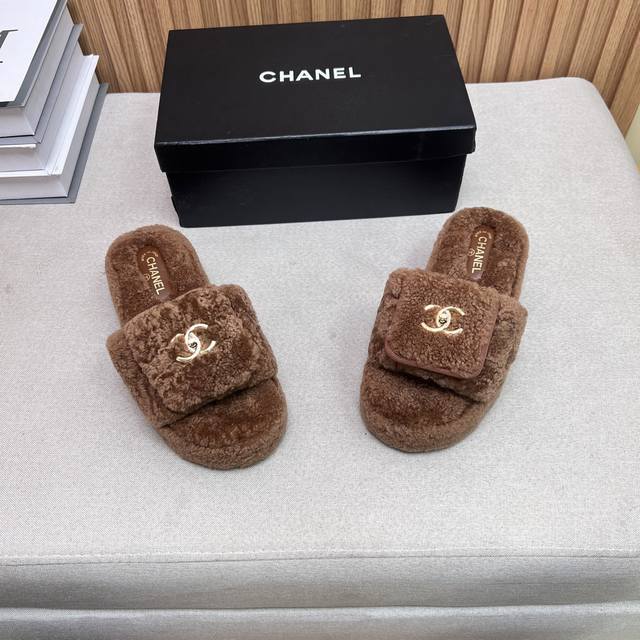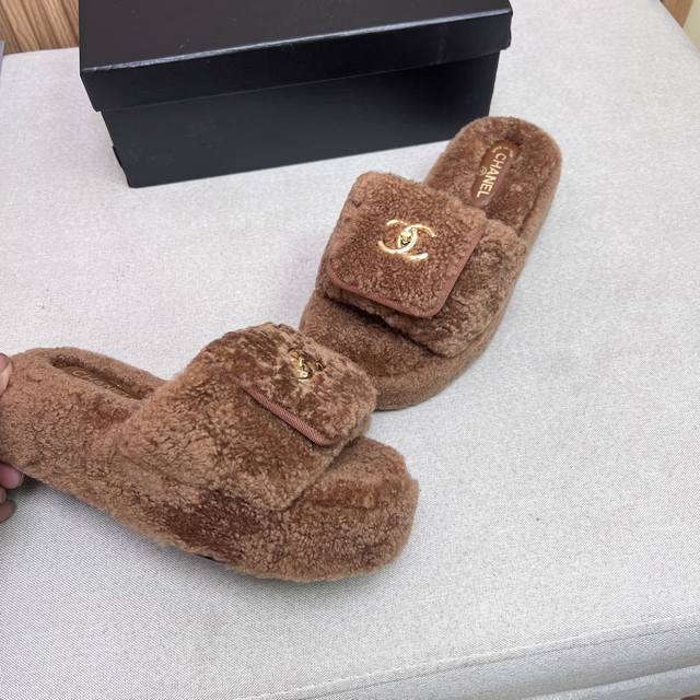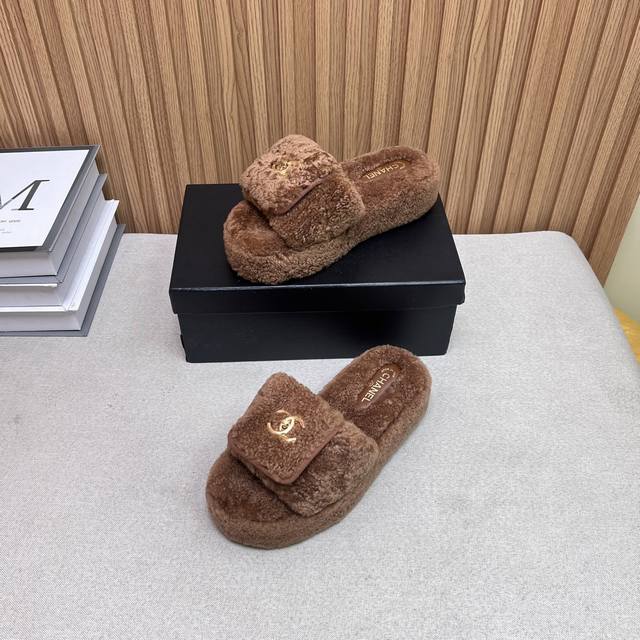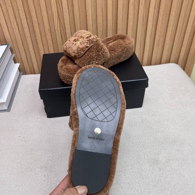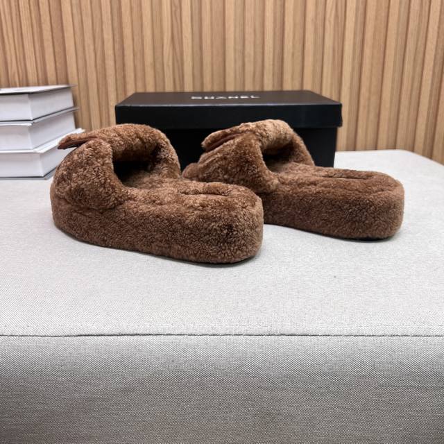 / Chanel小香风香奈儿 2025新款秋冬懒羊羊真羊毛懒人盖子拖鞋 小香菱格厚底毛拖 面料: 澳洲进口羊羔毛 內里: 澳洲进口羊羔毛 大底:橡胶底 码数:35-