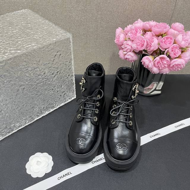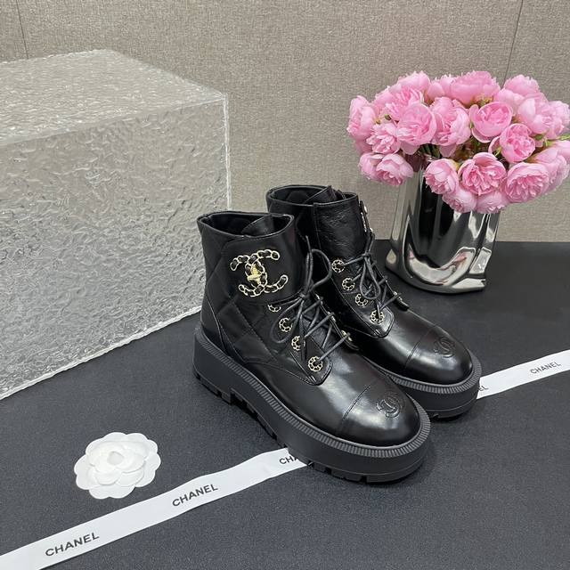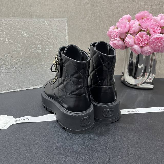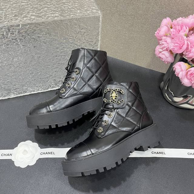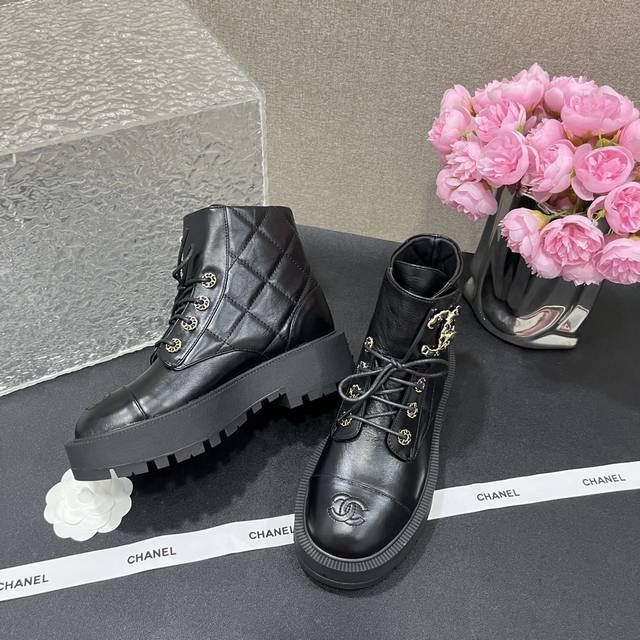 Chanel香奈儿小香 新款系带菱格短靴马丁靴 ~~~独家推荐,市场最高版~~~原版1:1定制, 面料:羊皮 内里:羊皮里 大底:意大利橡胶组合皮底 跟高:3.