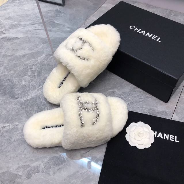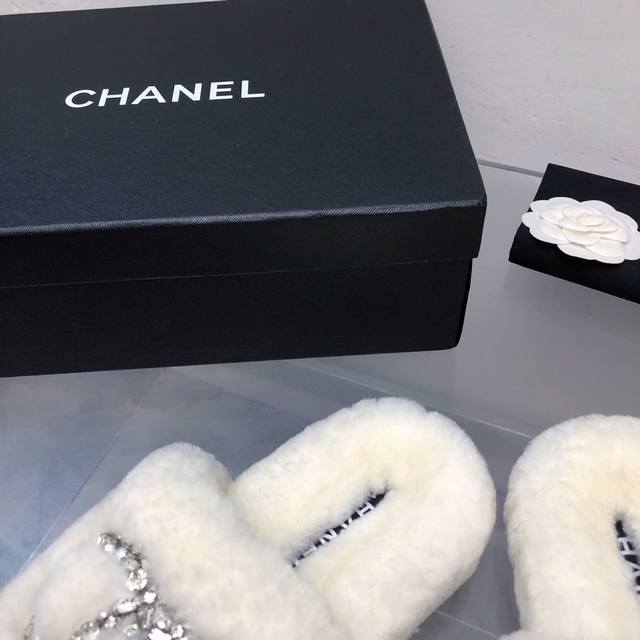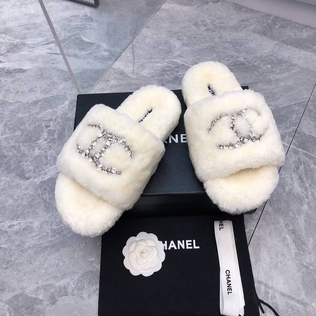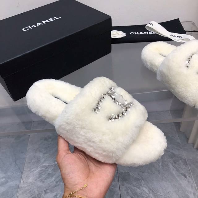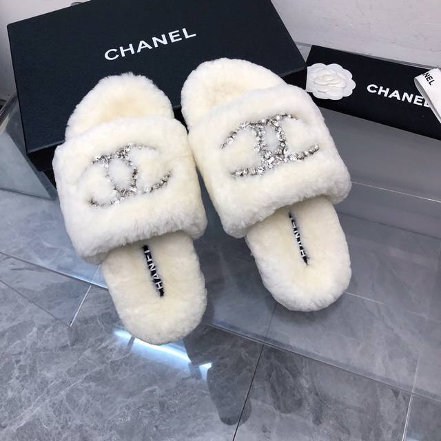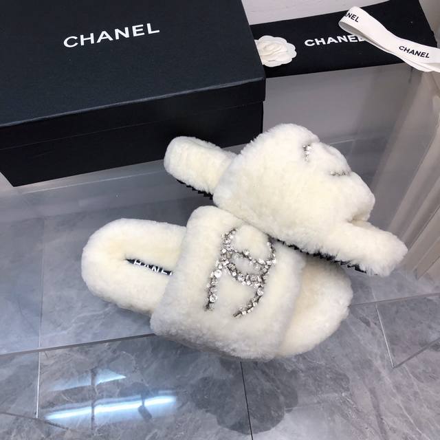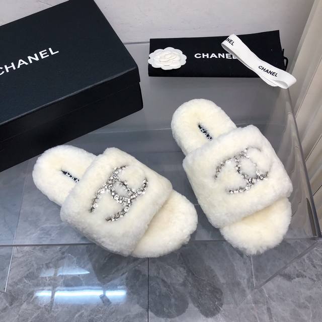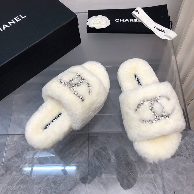 Chanel香奈儿毛毛拖chanel 早秋水钻毛拖系列。独家开模大底 C#Logo 休闲搭百搭又时髦,定制加厚羊毛 纯手缝工线, 更牢固. 节细决定品质 细腻,