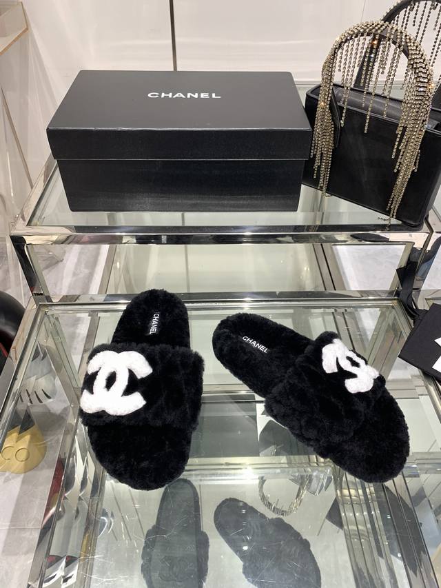 Chanel香奈儿 24Ss秋冬新款 羊毛毛拖鞋 官网、小红书同步最新配色香奈儿爆款火热上线,做工升级版,高品质 时尚潮流最新款泰迪羊毛h拖秋冬款平底毛拖,上脚