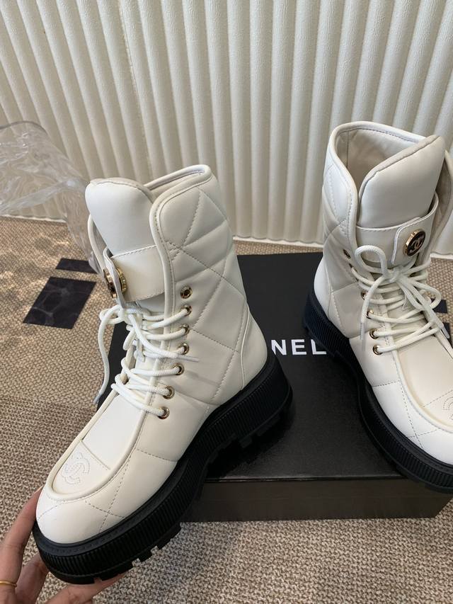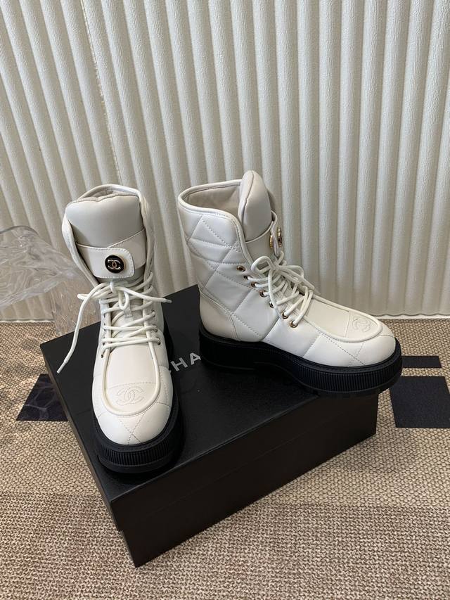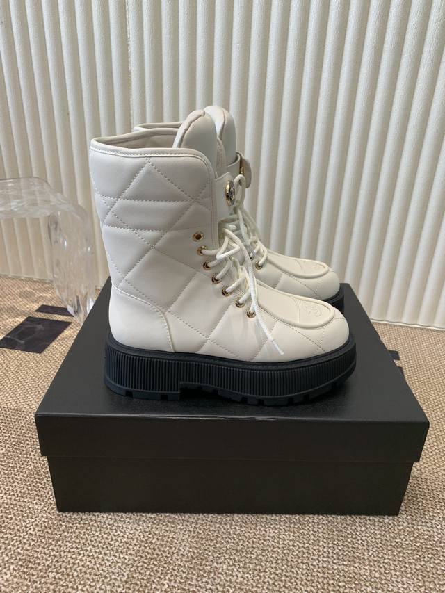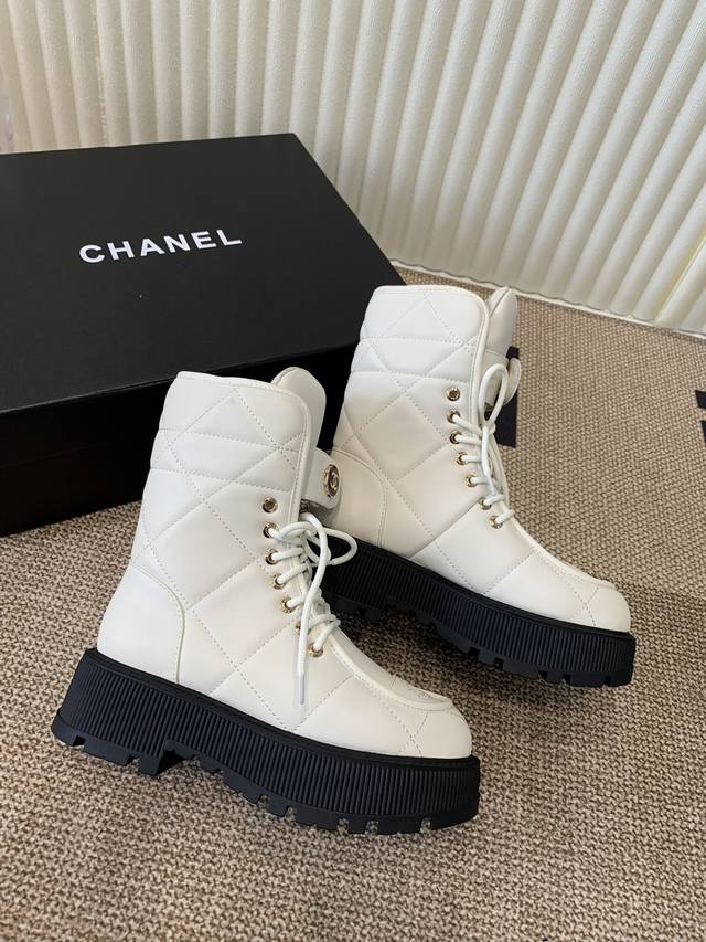 chanel香奈儿2024小香秋冬新款面包靴 超级保暖,整个冬天小脚丫都暖暖的,采用香奈儿电秀菱格风格,原版一比一开发,面料, 进口意大利牛皮 内里:羊皮,成型