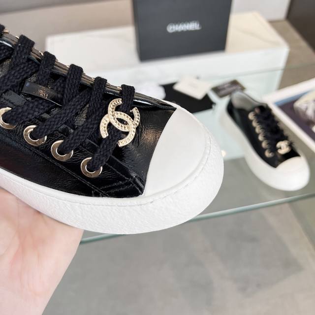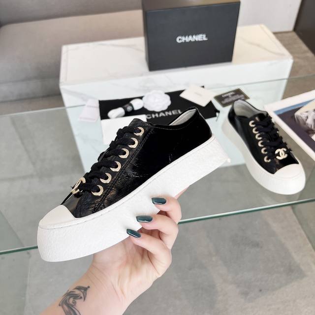 chanel香奈儿24P 小香最新爆款 大头鞋 娃娃鞋 休闲 运动鞋 小白鞋 原版购入开发 做货 小香这季大头鞋酷帅呆萌的鞋头加上立体浮雕双c Logo 太心水啦 皱牛漆的搭配令人眼前一亮 休闲中的高大上感扑面而来 经典款的设计加上金属圆扣分外抢眼 平底设计 异常舒适 日常搭配 出街 扮酷必备神器