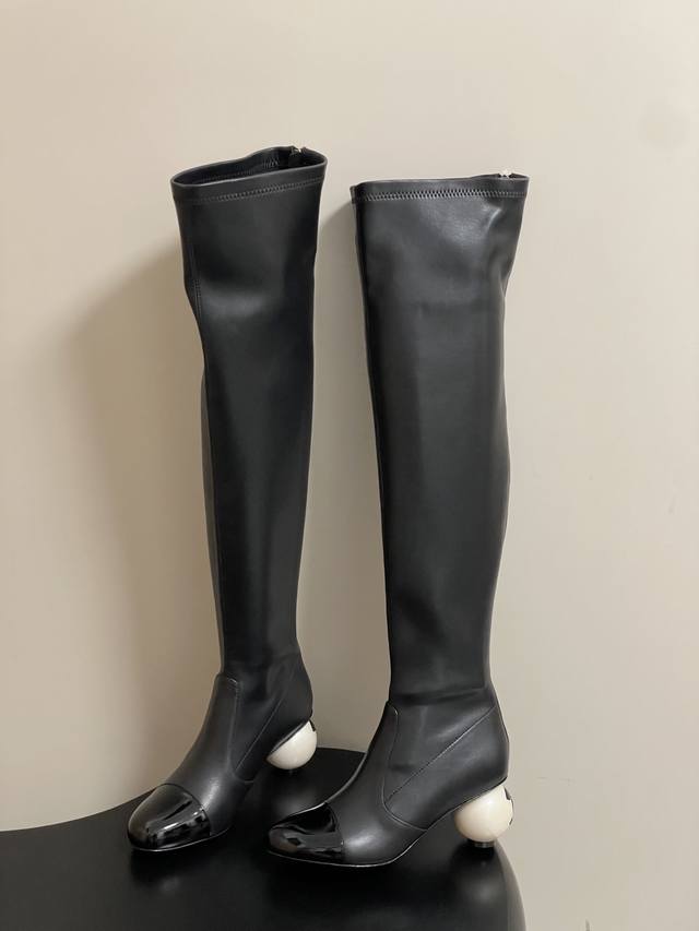 在米兰时尚的T台上 亮相便艳惊四座,成功晋升为潮流人士的梦中情靴 。经典的双C标志与巨型珍珠跟设计相结合,简洁大气又尽显品牌格调 随便一拍都很出片。那巨型珍珠鞋跟更是神来之笔,突破常规的设计 不仅为整体增添了奢华浪漫的氛围 。