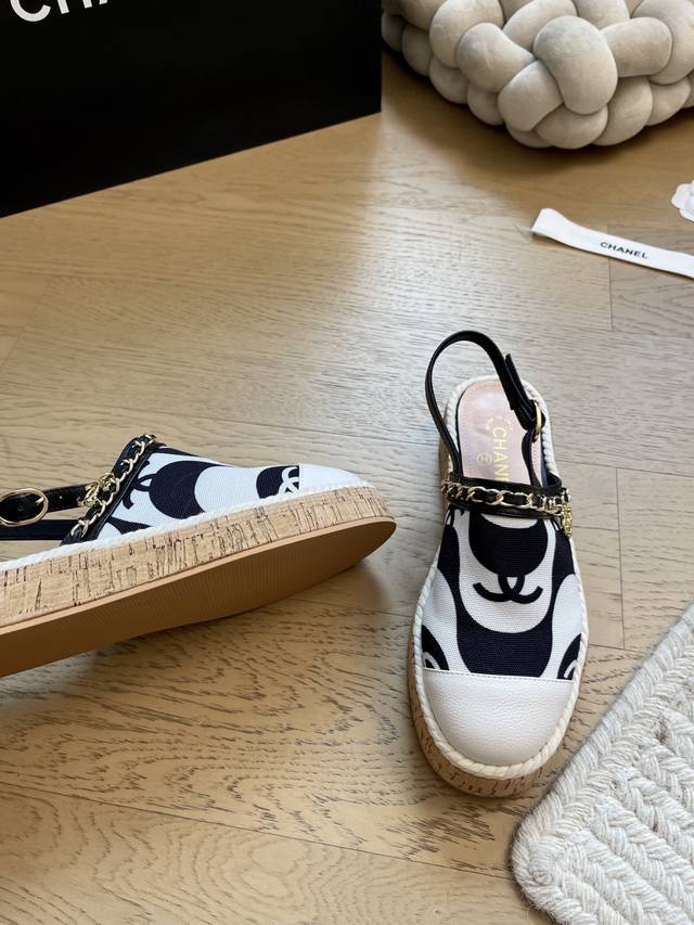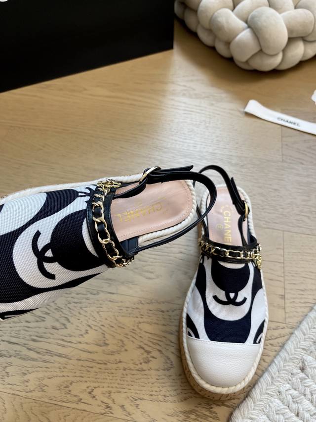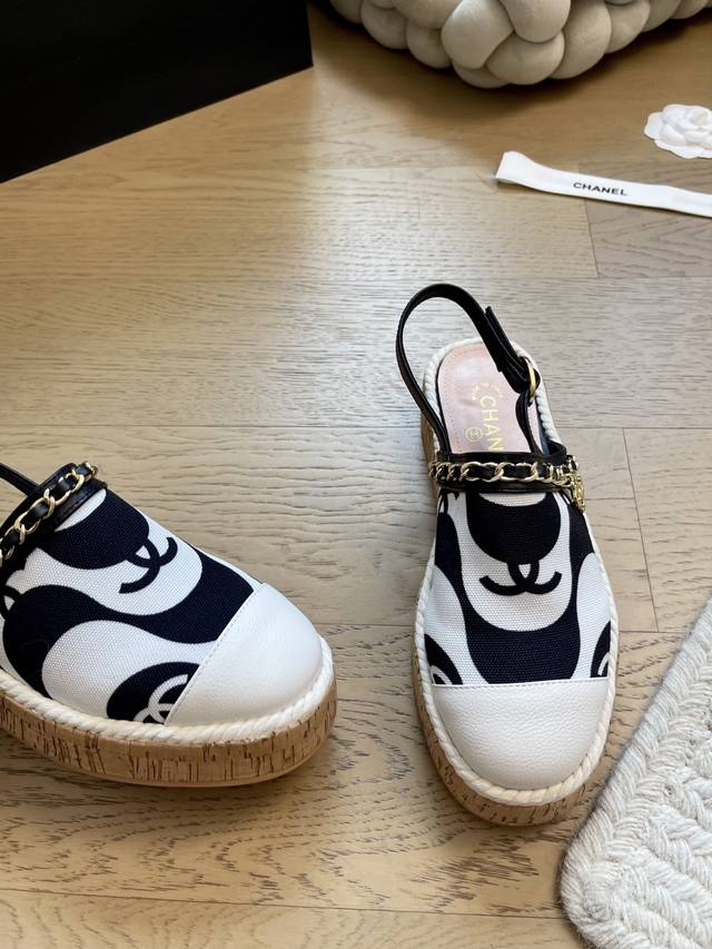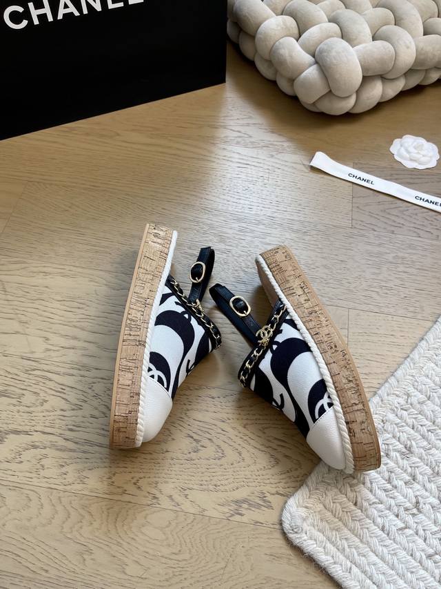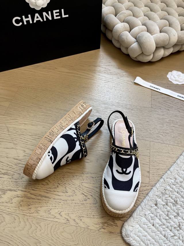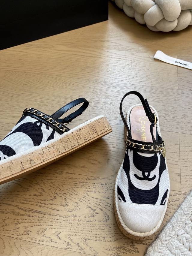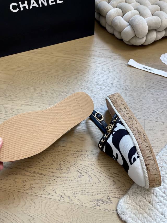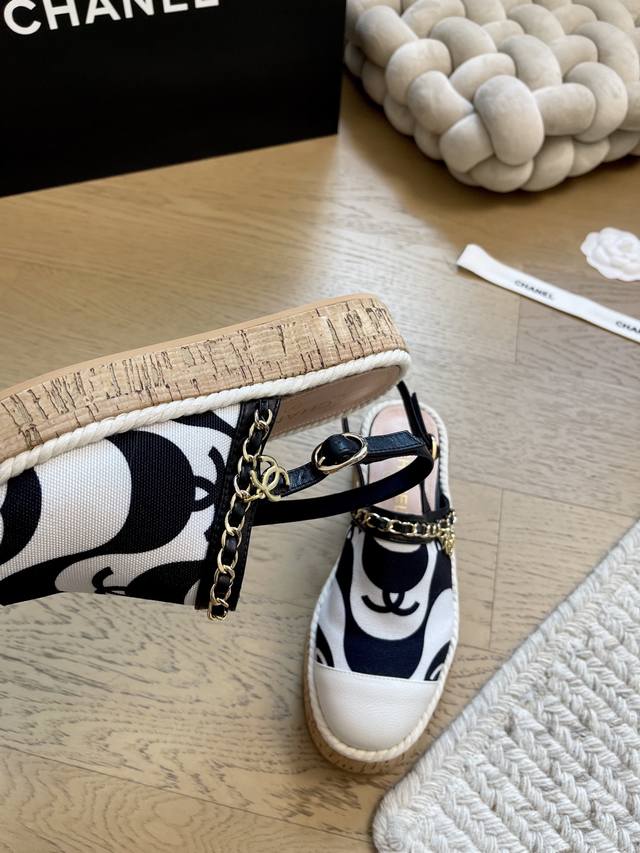 Chanel 新款厚底木纹半拖系列! 顶级版本!抢先发售 鞋面布面 内里进口羊皮 原版防滑大底 跟高5Cm 码数:35-41 34 40 41定制不退换