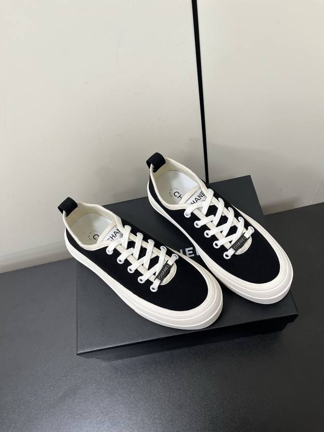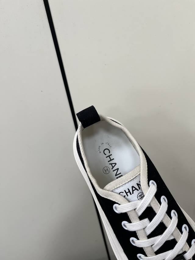 Vintage感满满,中古复刻款Get啦~帆布鞋适配春夏,黑白拼接就很Chanel。配合袜子就很复古学院的感觉。