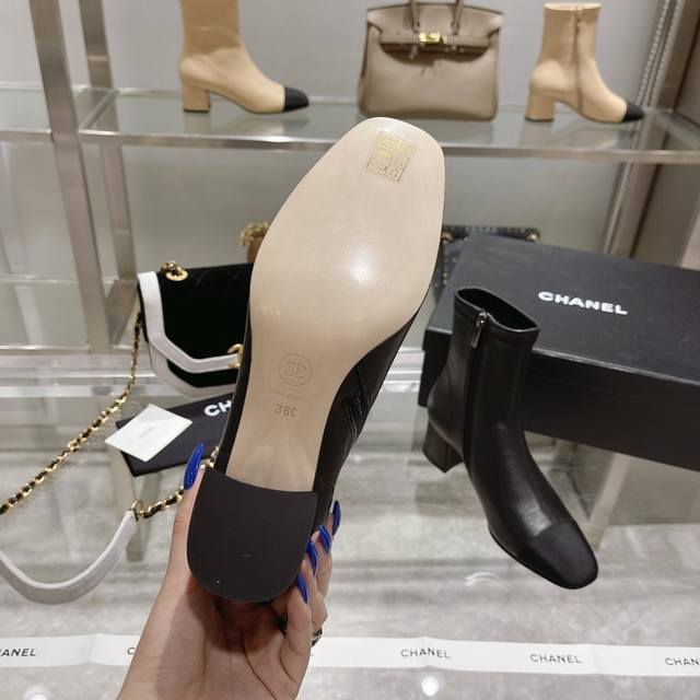 chanel 香奈儿 小香万年经典拼接粗跟短靴。诠释优雅小香风超级有质感的款式,低调而不简单,气质并且贵气,特别鞋跟处小小的双clogo点缀,和鞋头简单的不同材