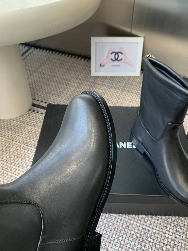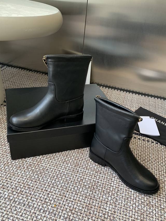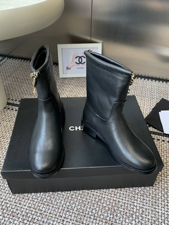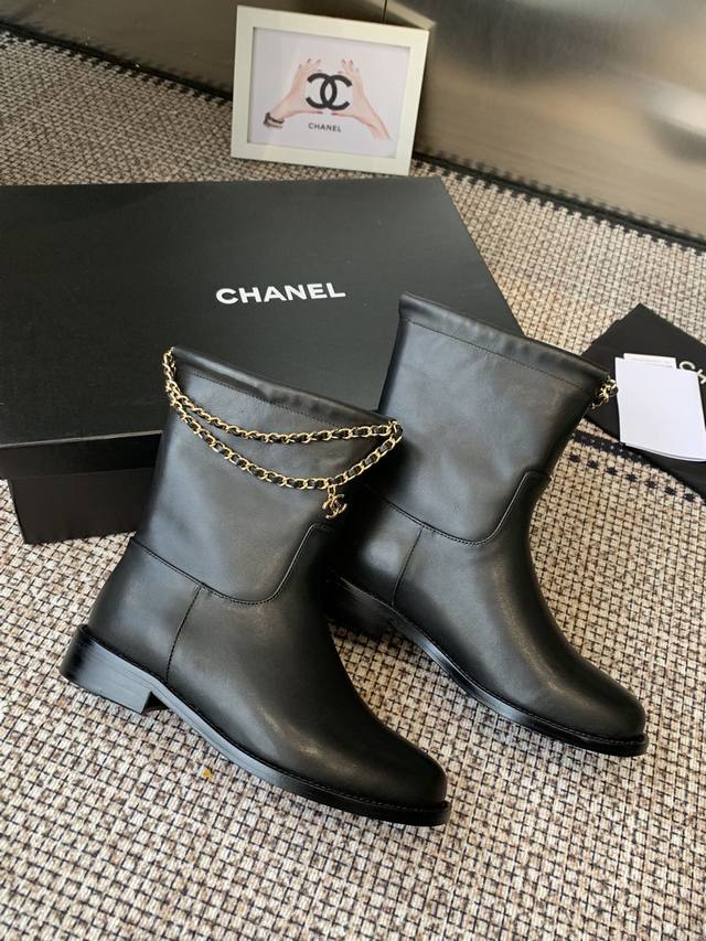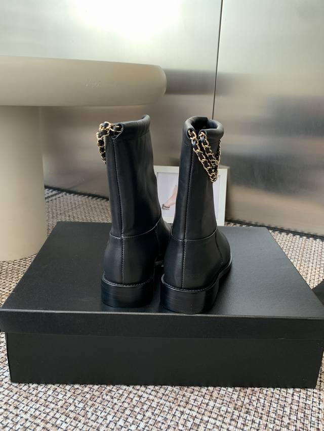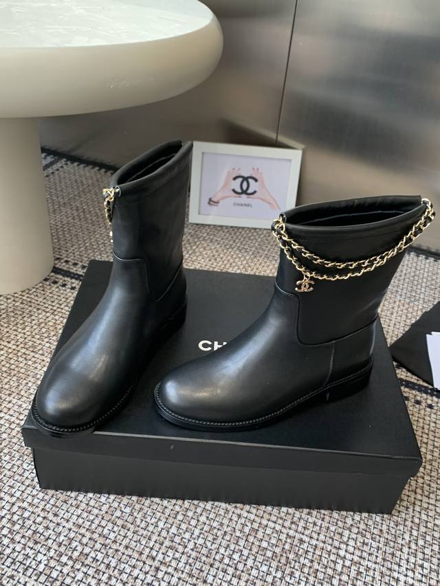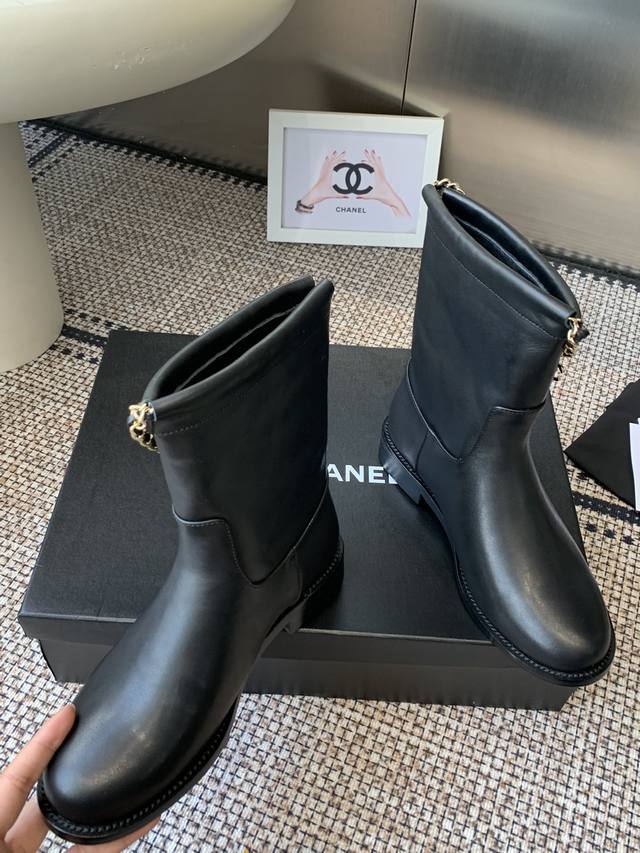 Chanel 香奈儿 25Ss专柜顶级链条骑士靴 秋冬新款 小红书力推款,时髦精必备,香奈儿女士钟爱简约又难以抗拒系 金色五金扣,搭配展现与众不同的穿搭风格 内里垫脚水染牛皮 意大利真皮大底 码数:35-41 40.41.定做不退换