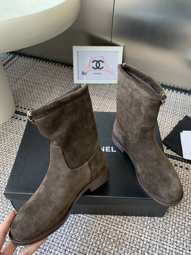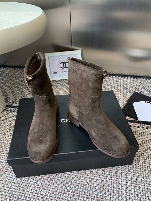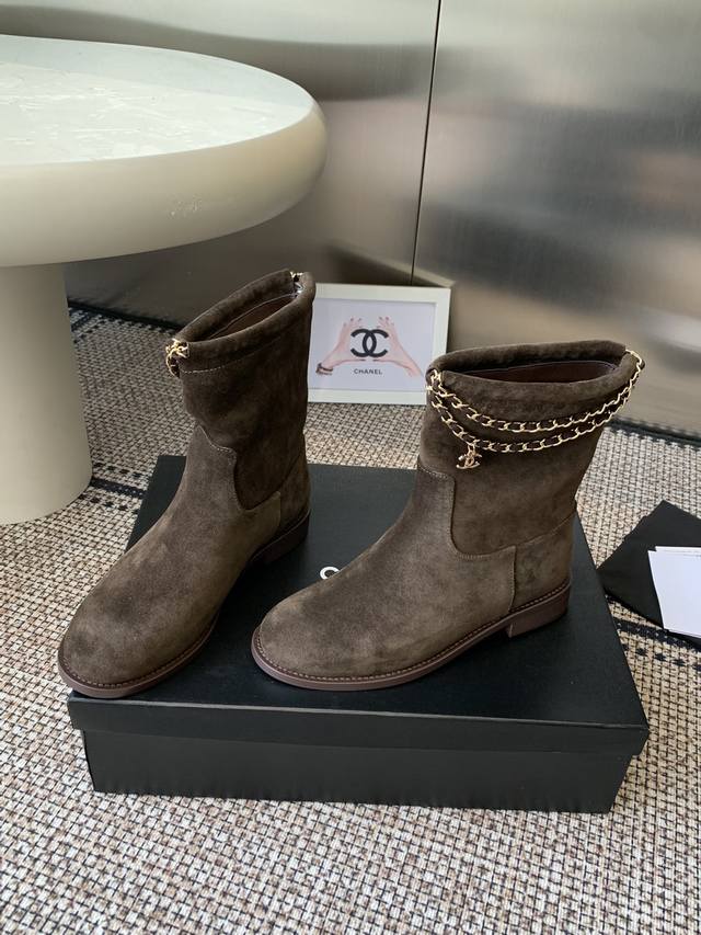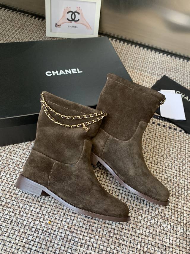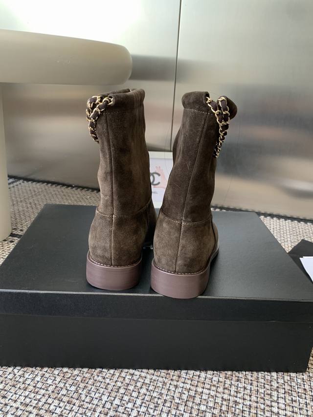 Chanel 香奈儿 25Ss专柜顶级链条骑士靴 秋冬新款 小红书力推款,时髦精必备,香奈儿女士钟爱简约又难以抗拒系 金色五金扣,搭配展现与众不同的穿搭风格 内里垫脚水染牛皮 意大利真皮大底 码数:35-41 40.41.定做不退换